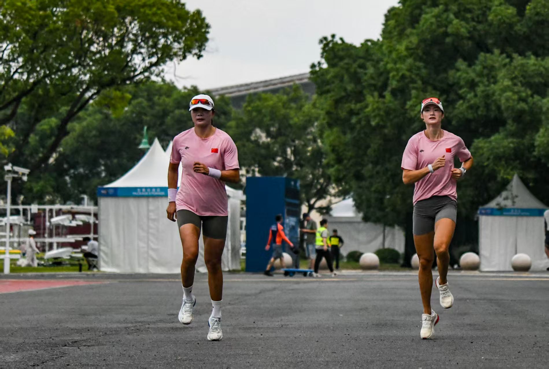 张灵陈云霞热身激活身体。劳动报记者颜筱依 摄影