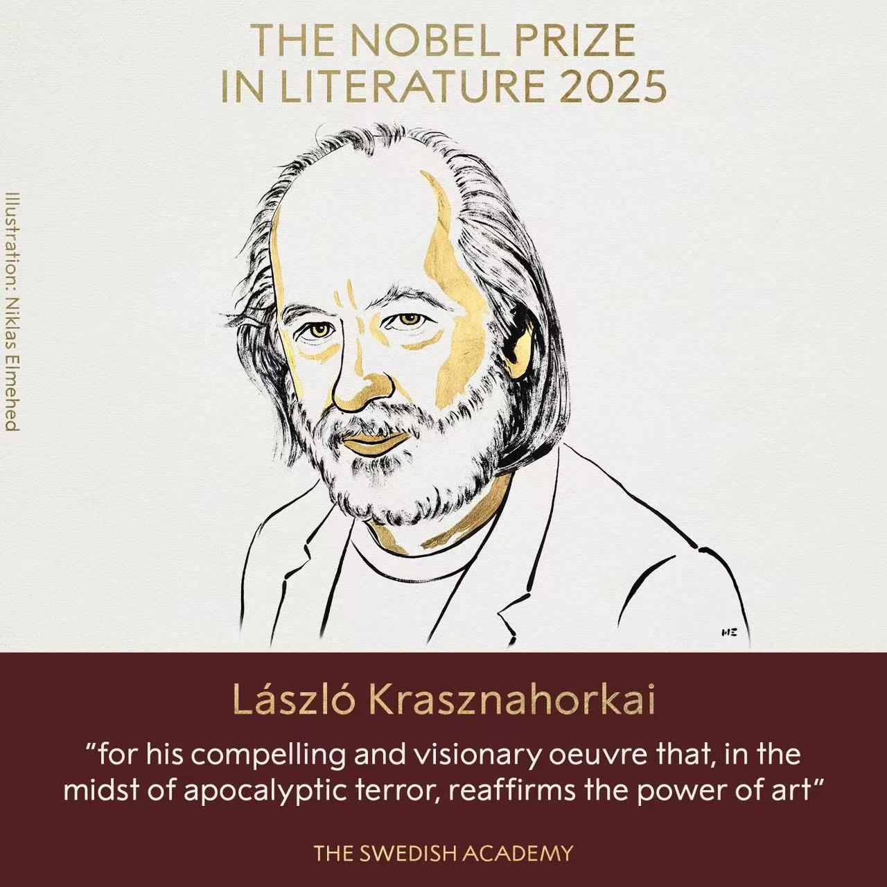 头图为拉斯洛获得2025年诺贝尔文学奖的官方海报。图自网络
