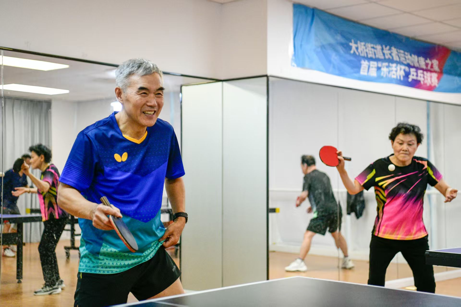 “来,再打一场!前天你拿了第三名,今天可得让我赢回来!”在大桥街道长者运动健康之家的一侧,乒乓球区热闹非凡,戴玉芳和球友们挥拍激战,欢声笑语传遍整个场馆。