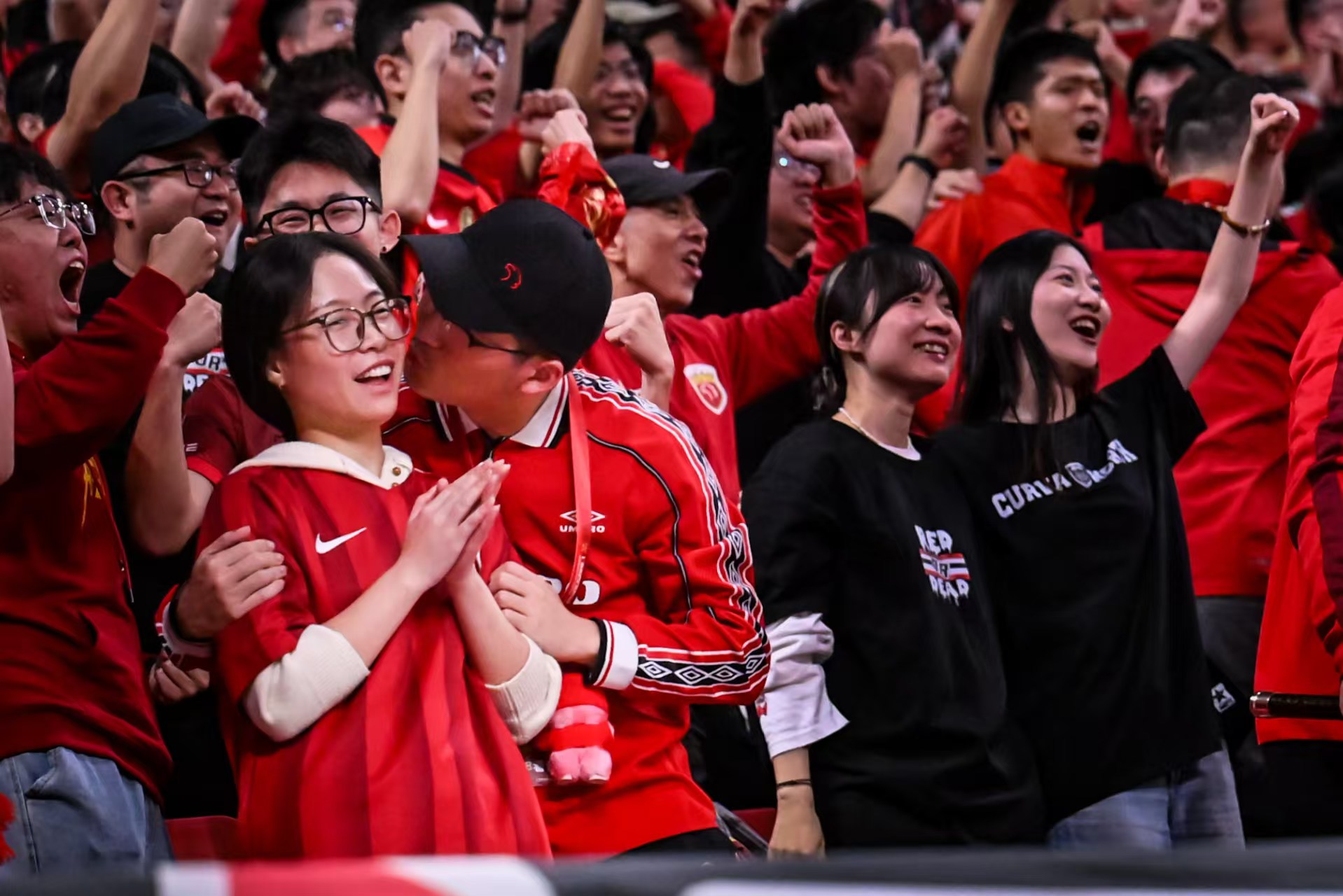 赛后,虽然还不知道另外两场比赛的比分,浦东足球场依然变成了欢乐的海洋,球员、吉祥物伊戈一起与球迷欢呼庆祝。主教练穆斯卡特则一如既往,远远地站在球员身后,淡定而又从容。