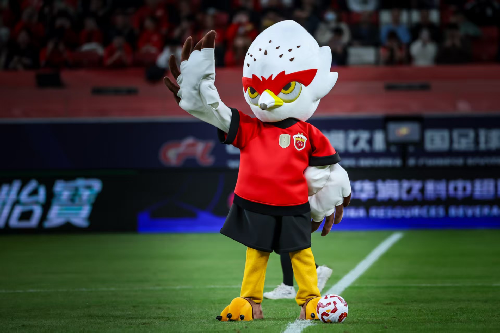 比赛鸣哨开赛前,海港俱乐部酝酿了大半年的吉祥物“破壳而出”,以队徽中“海东青”为原型的白色雄鹰取名“伊戈”,在英超曼联队名宿、著名门将范德萨的带领下,正式在球场中央亮相。