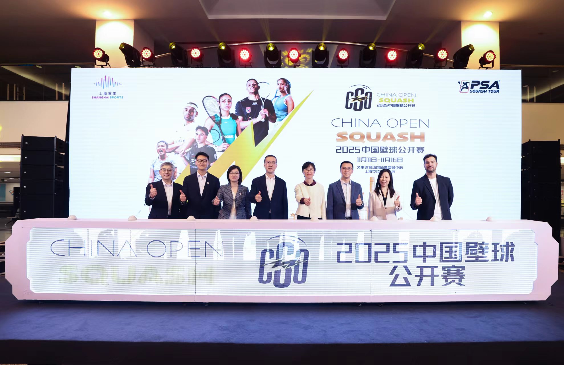 11月10日晚,2025中国壁球公开赛启动仪式在上海世贸展馆举行。男、女单打世界排名前十的选手,如保罗·科尔、穆罕默德·艾尔舒巴基、哈尼亚·埃尔·夏玛妮等均悉数到场,共同见证2025中国壁球公开赛华丽启幕。