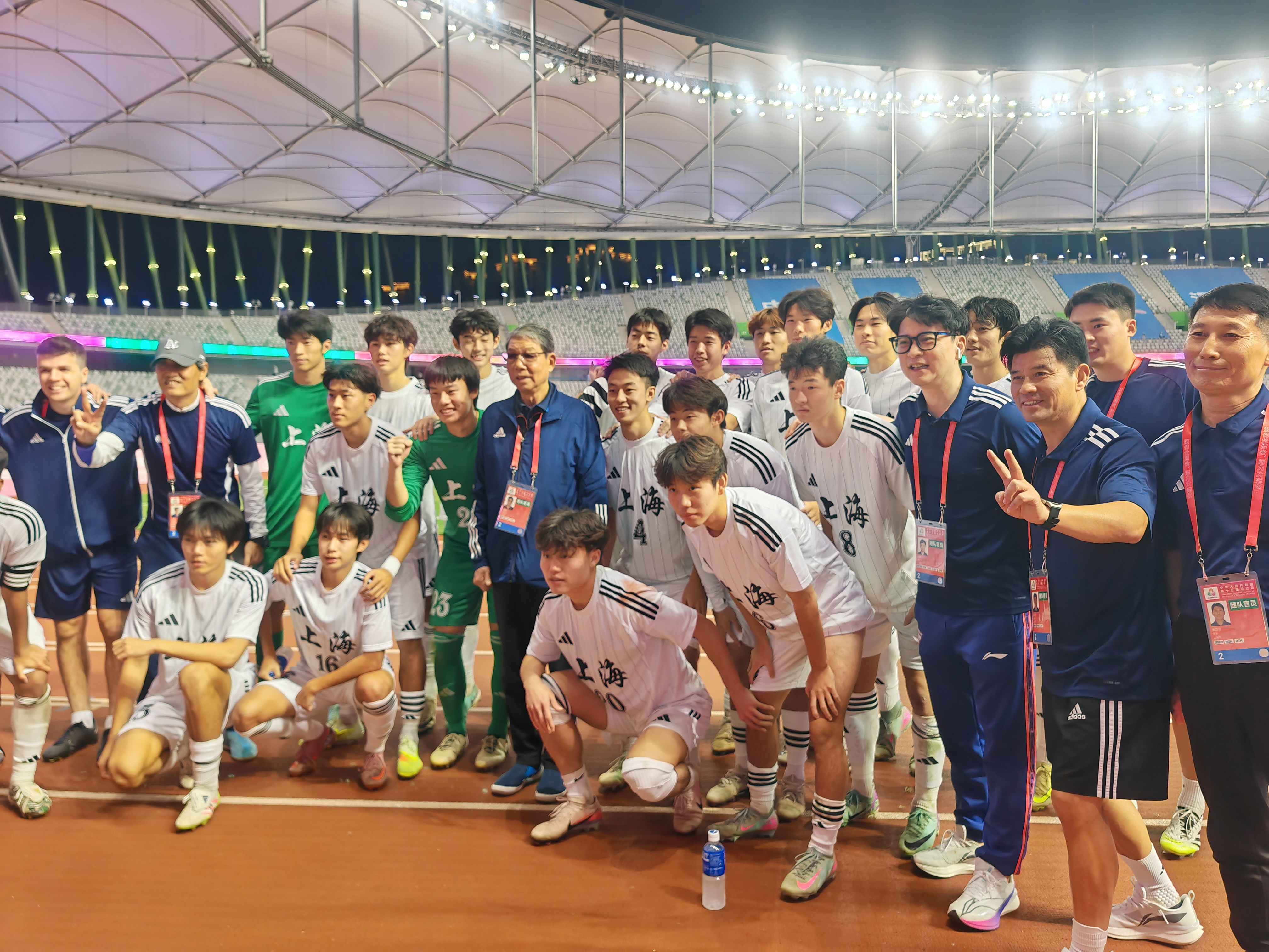 山东队是去年三大球运动会冠军。打光了最后一颗子弹的上海队特别争气,在场面处于劣势的情况下,全队顽强地扛到点球大战。残酷的点球大战,包括队长蒯纪闻在内的五名球员全部主罚命中,门将刘浩然还成功扑出了山东队的第二个点球,全队还是成功站上了领奖台。