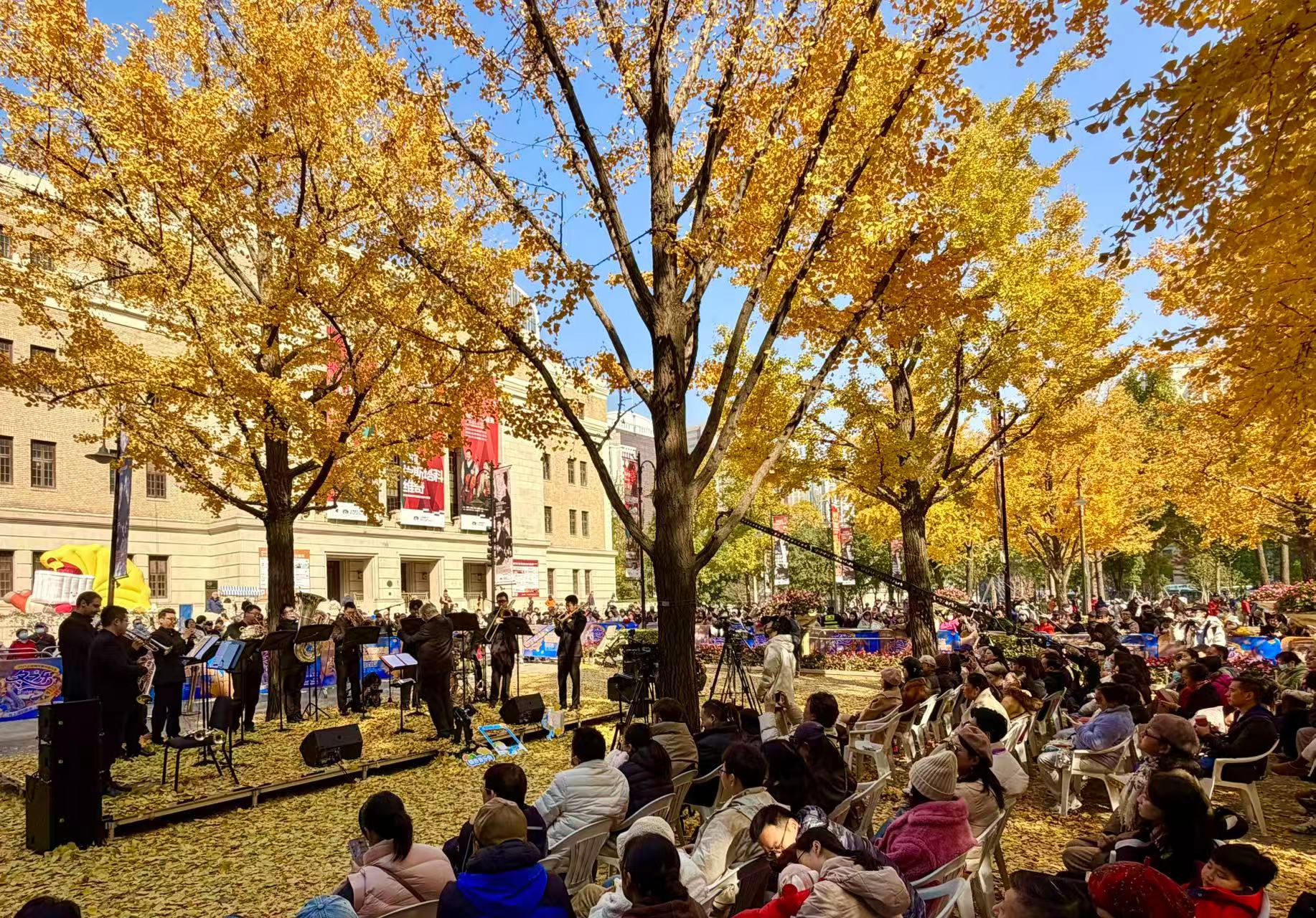 12月6日,陪伴申城市民走过12年的“季节限定”银杏音乐会再次如约而至,以“杏会金响”为主题,集结十一支铜管和打击乐,用磅礴声浪重塑了城市户外艺术新体验。