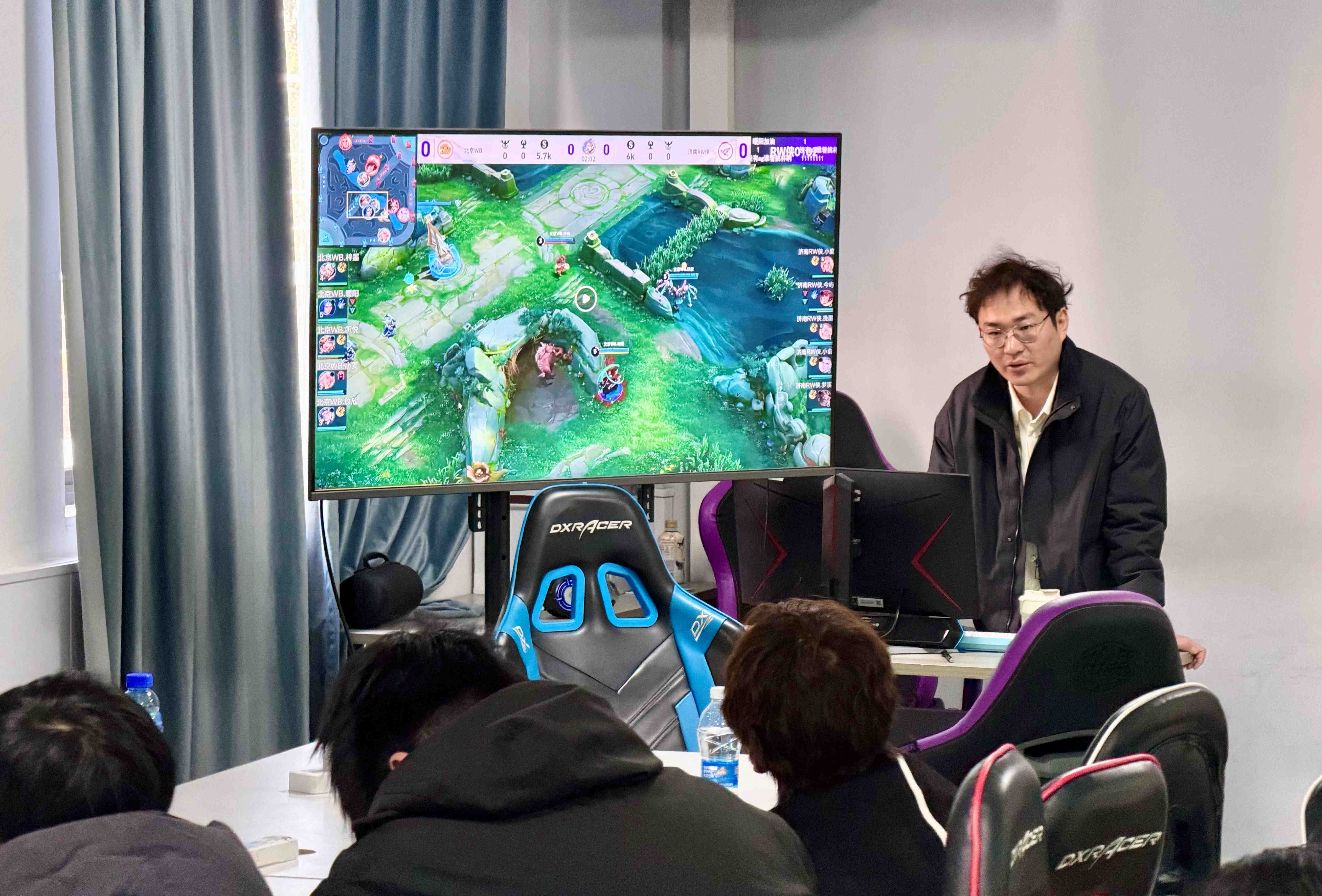 电竞项目负责人丁子超在给学生复盘讲解。劳动报记者贡俊祺 摄影