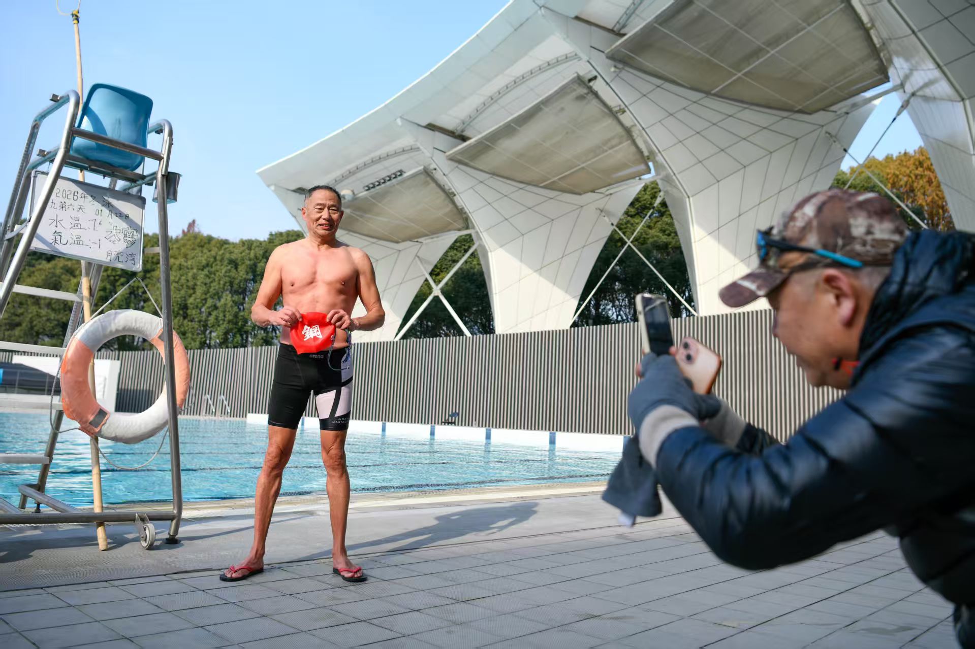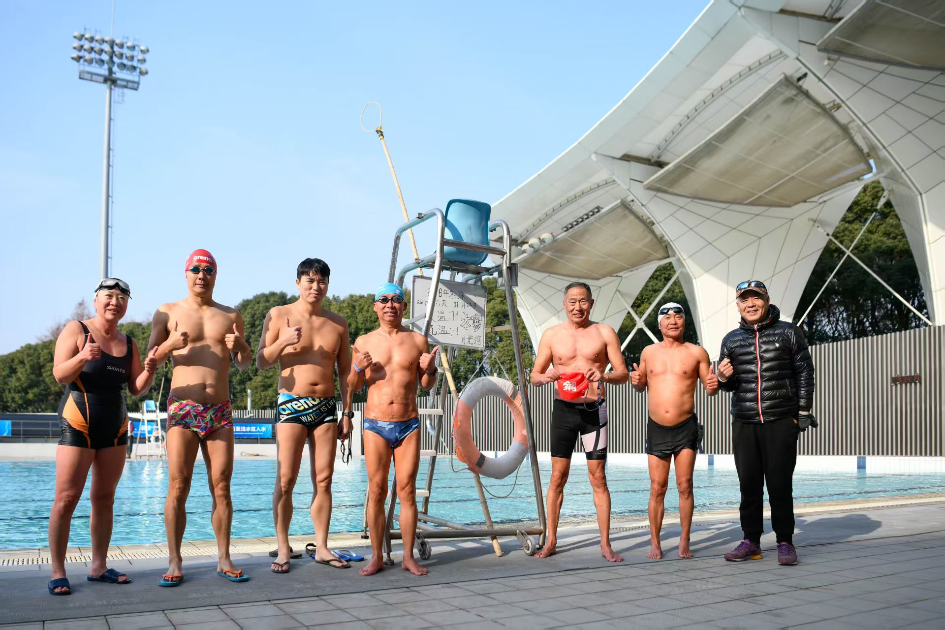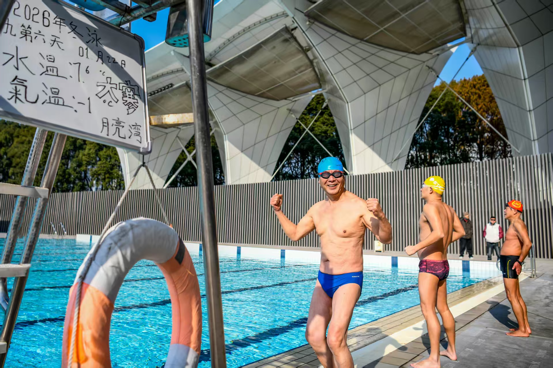 寒风阵阵,冷气逼人。正值申城寒冬,室外气温低至-1℃,水中温度也仅有8℃不到,却丝毫没有影响冬泳爱好者的运动热情。