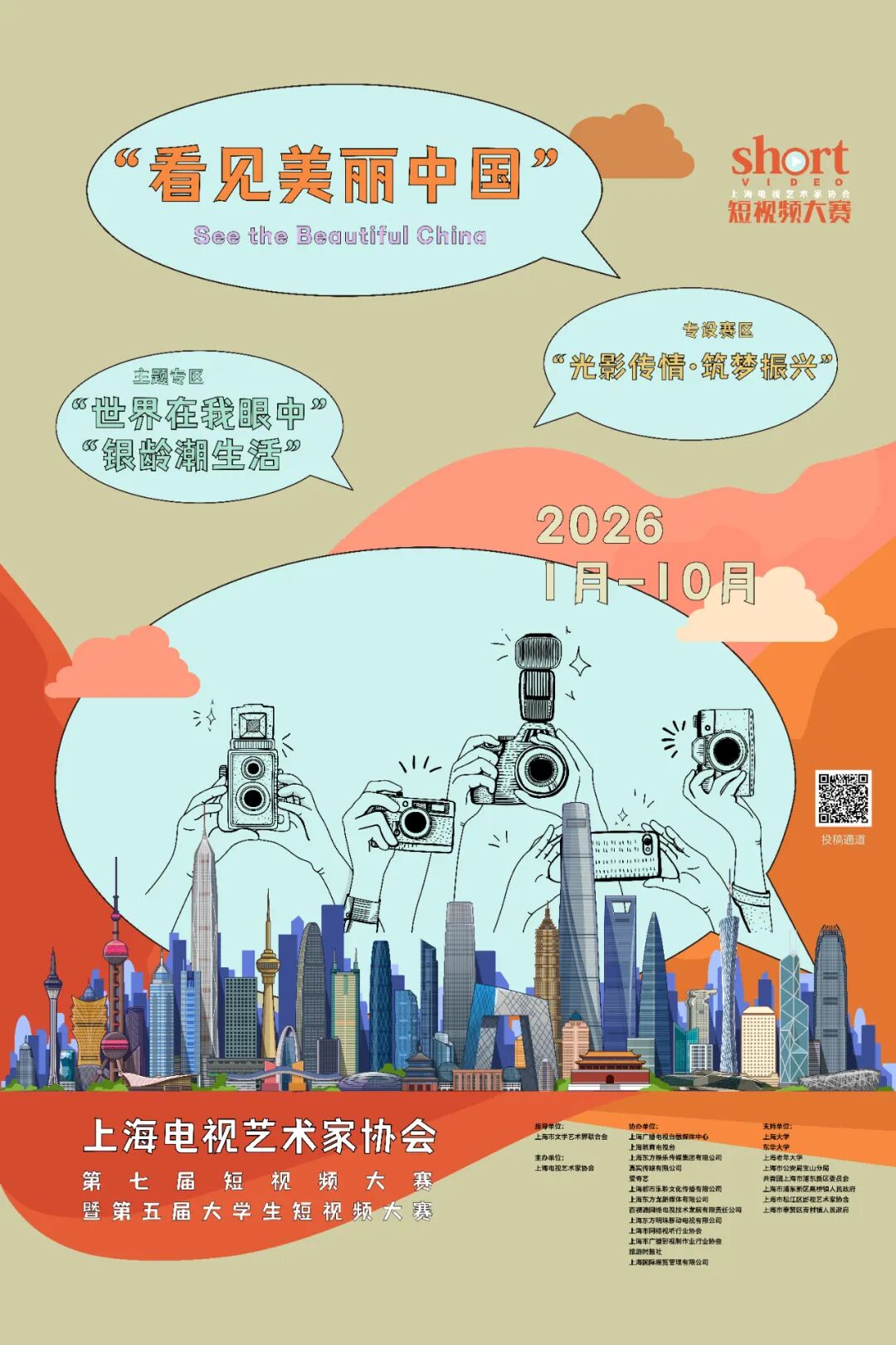 上海视协联合多家单位,于2026年1月至10月共同主办上海电视艺术家协会第七届短视频大赛暨第五届大学生短视频大赛。