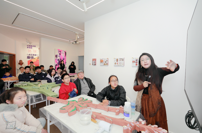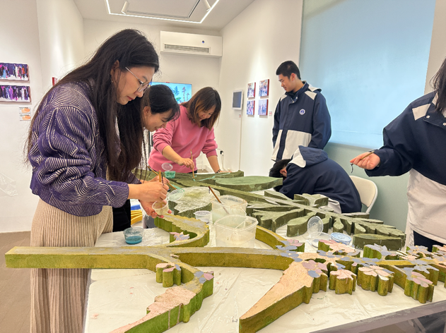 该项目由东明路街道办事处主办,社区枢纽站统筹策划。上海大学上海美术学院副教授陈静担任主持艺术家,硕士研究生卢雪儿协助执行。2月26日至28日,配合装置落地连续举办三天的岩彩创作工作坊与参与式布展活动。