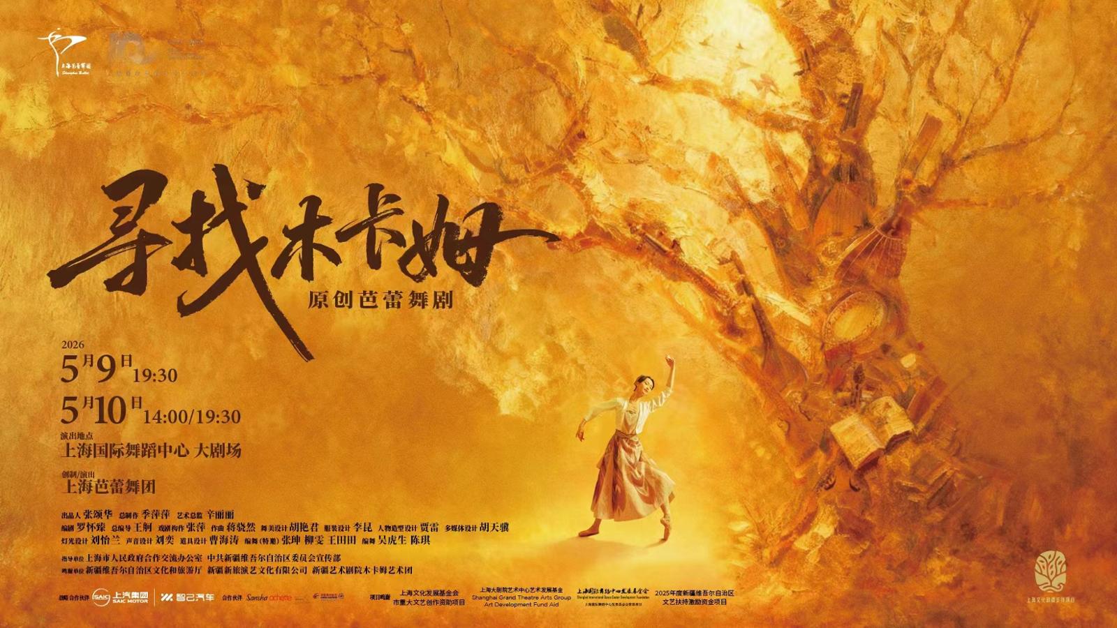 当新疆维吾尔木卡姆的悠扬韵律邂逅芭蕾的优雅语汇,当漂泊游子的归乡情愫扎根新疆沙漠与胡杨之间,上海芭蕾舞团历时三年精心打造的原创新作《寻找木卡姆》将于5月9日至10日在上海国际舞蹈中心迎来世界首演。