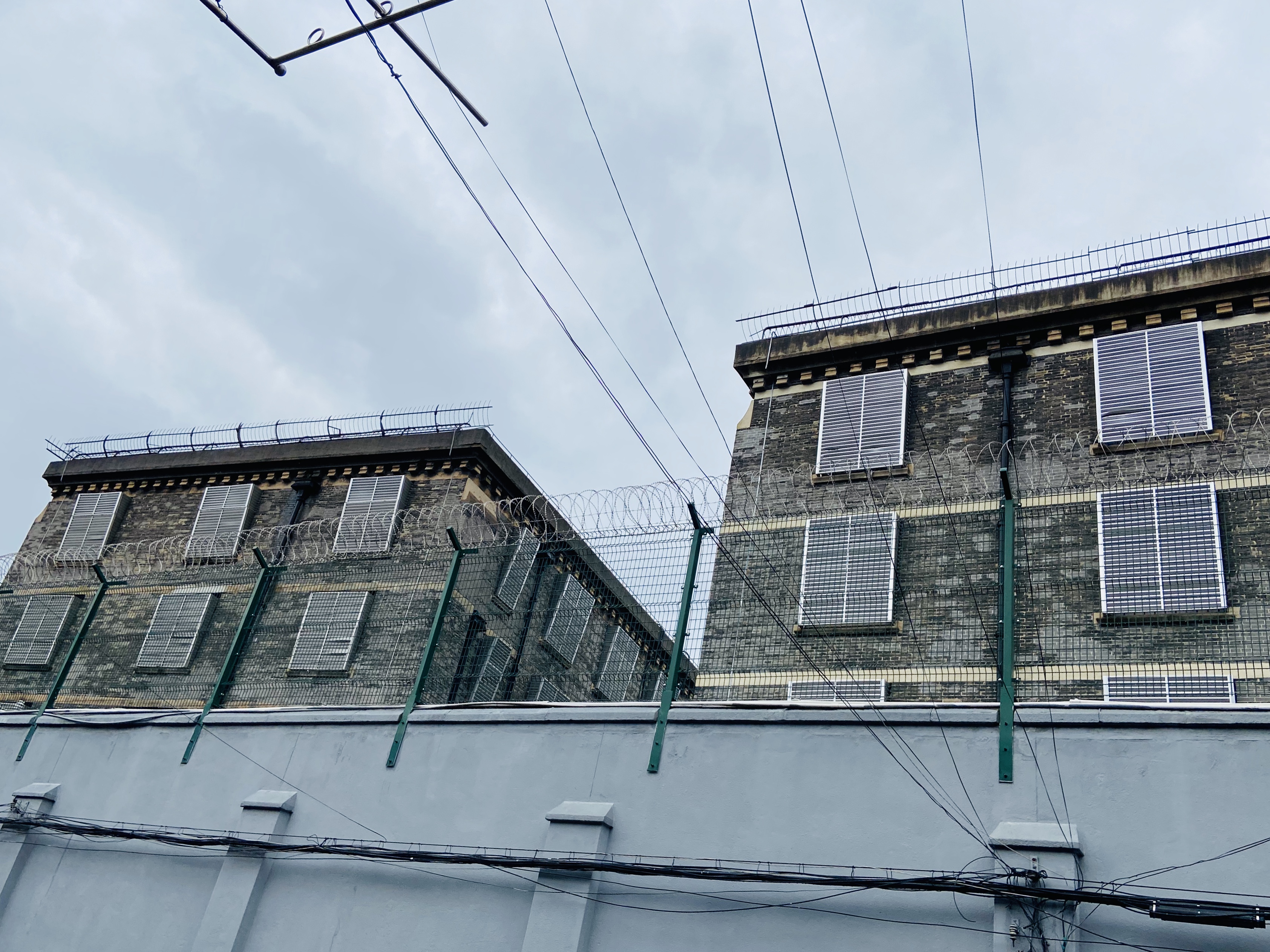 从下海庙的历史到提篮桥名字的由来,再到舟山路上的提篮桥监狱。随着路线的推进,一边听郑导的讲解,一边看着眼前的建筑,原来路边这些建筑物还有着许多历史故事。始建于1901年的提篮桥监狱,是中国迄今仍在使用的最悠久的一座监狱。从前只在影视作品中见到的提篮桥监狱,真实出现在眼前时,又有一些过于“平常”。置身于舟山路上,左边是监狱围起的高墙铁瓦,右边是一排小店,人们悠闲地养花、看店。