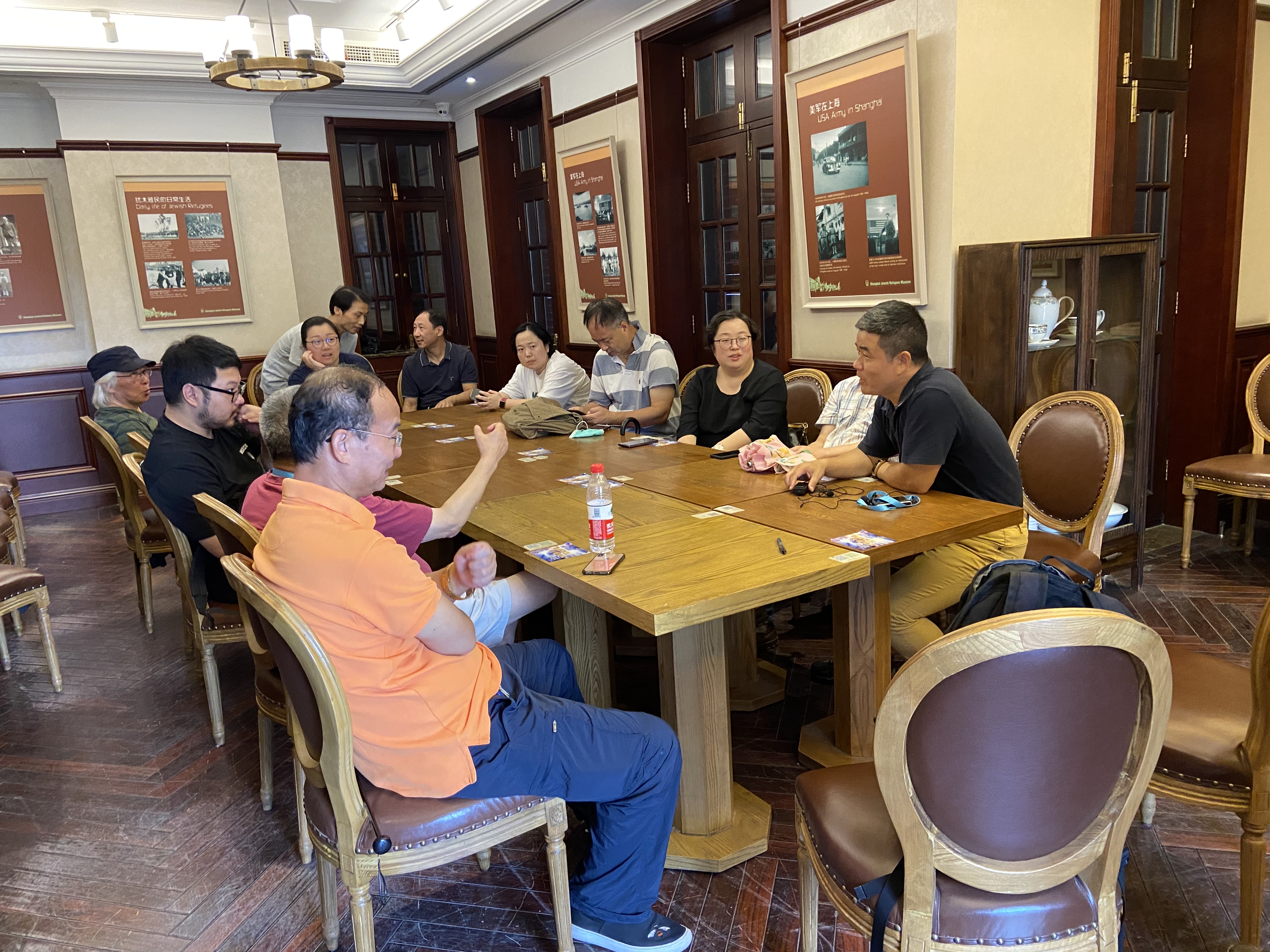 活动最后,我们回到白马咖啡馆,在咖啡的香气中,一边休息一边畅聊游览后的感受。一路讲解的郑导终于坐下,被问到是否累时,他笑着表示:“不累,这就是我的工作,你们有收获我才开心呢。”当天参与的还有几位资深导游,对于今天的活动,资深导游陆导予以称赞:“活动的形式很不错,其实上海有很多值得游的地方,比如周公馆、苏河湾,相信很多人都不够了解这里。”职工爱游俱乐部负责人许薇表示:“因为疫情期间大家走不出去,我们也做了很多思考和尝试。今后还会推出寻找红色基地、寻找电影片段、摄影等城市主题游。”