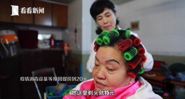在李阿姨的理发店里,原先洗剪吹的价格是15元,很多年都没有涨价。今年受疫情影响,消毒成本上升才调整为20元一次。不过老客人都说,这几乎能算是徐汇区最便宜的理发店了。