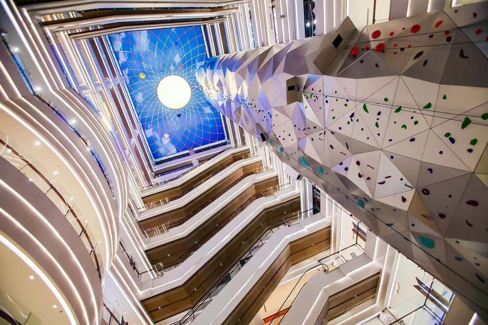 12月31日,新世界三楼的天宇攀岩馆将在“吉尼斯世界纪录”认证官的见证下,挑战吉尼斯世界纪录荣誉称号,目前世界最高的室内人造攀岩墙纪录是42.16米,这是由阿联酋阿布扎比的CLYMB在2019年12月11日创下的。12月31日,让我们共同见证新世界天宇攀岩馆登上世界室内最高顶峰。