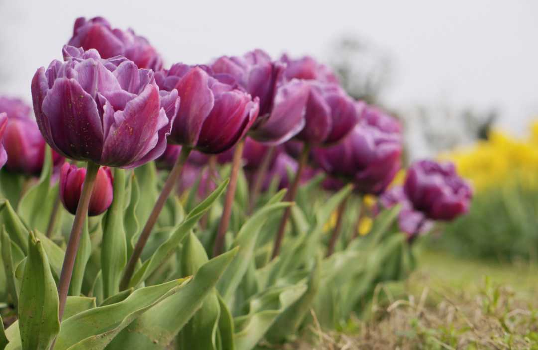 每个品种的郁金香组成了各自的列队,伴着明媚春色,信步走来,一排排一列列惊艳亮相。