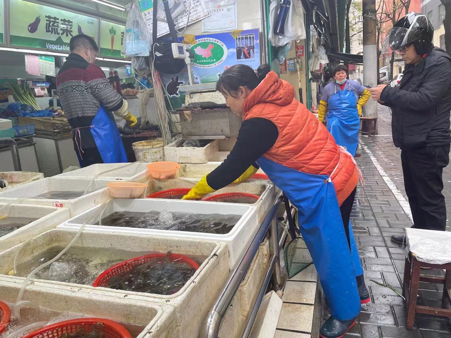 三家水产店的店主介绍,现在来买河虾的消费者并不多,所以每天进货都不算多。来买的以老人为主,烧了自己吃或是给家里的小朋友吃。也有的人吃海鲜过敏,趁着河虾上市的季节会买了吃吃。