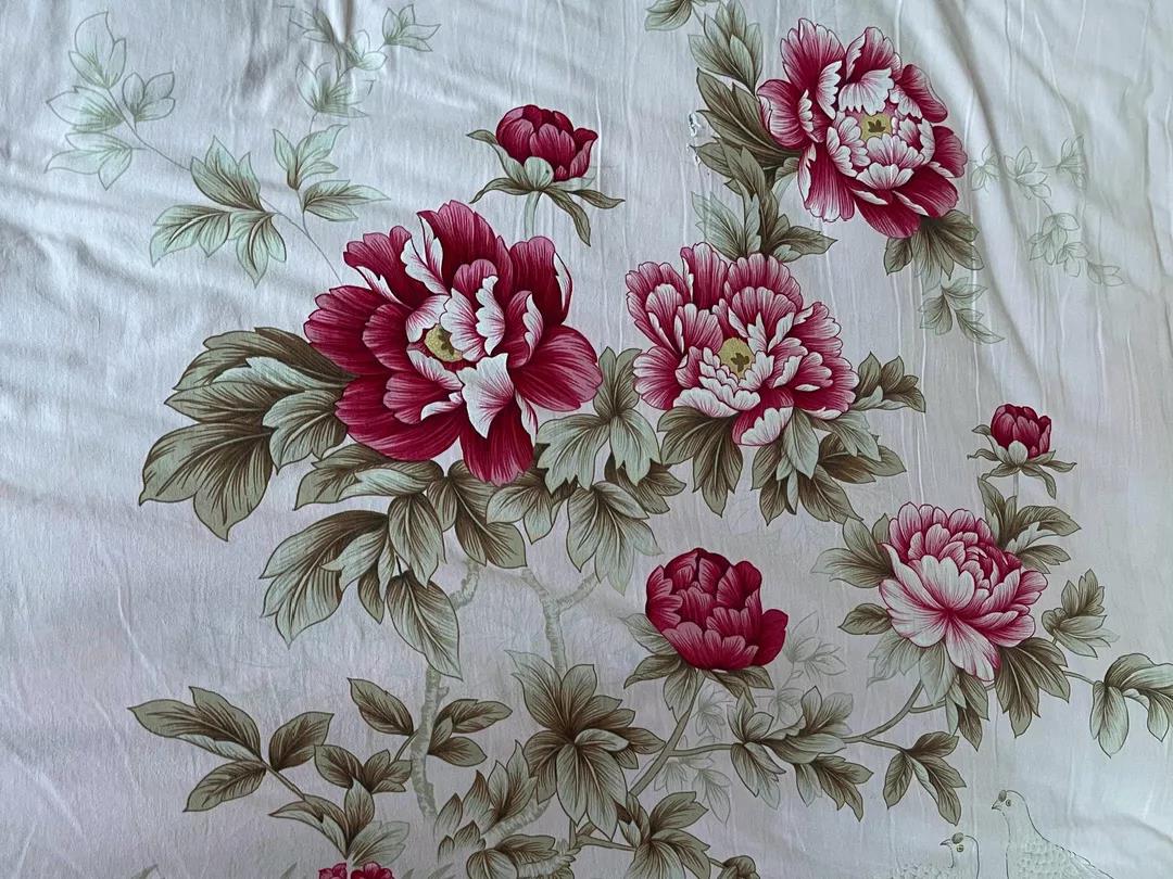 这条绘上了牡丹花图案的床单,充满了干净、亲切、温暖的感觉。其实,除了牡丹花外,“国民三件套”上常绘有月季、菊花、兰花等图案。