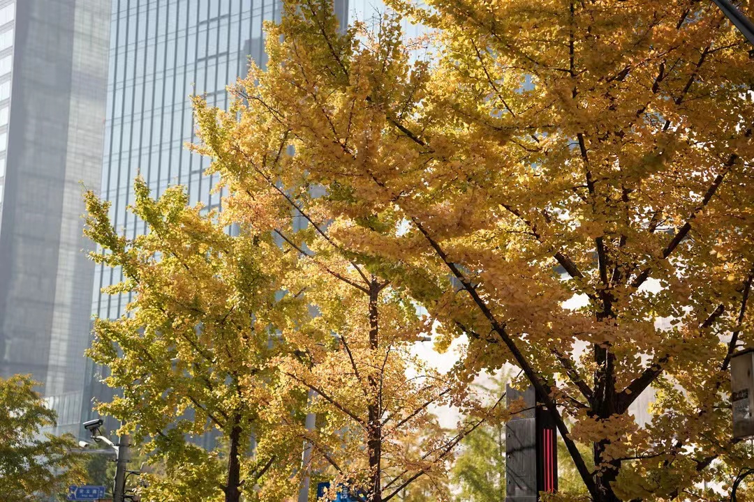 常德路上的银杏开始变色啦~金色风景线限时回归
