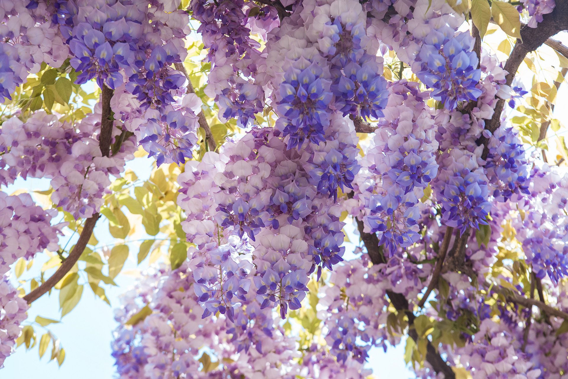 近几日天气晴好、气温升高,紫藤积蓄了整个冬天的力量也喷薄而出,在棚架、屋檐之上悄然绽放,一起跟着镜头感受这份春意。