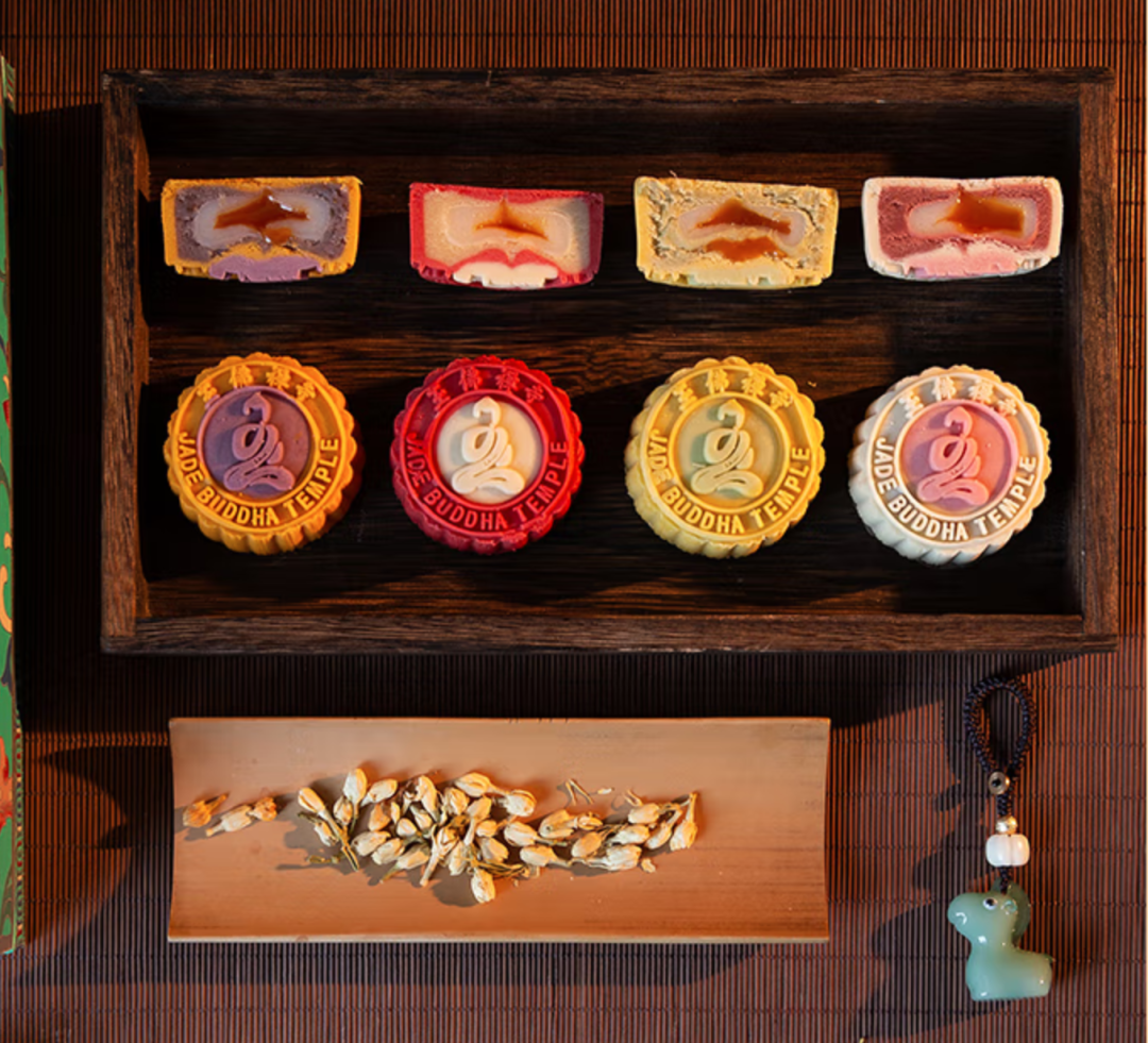玉佛禅寺今年生产的净素月饼也多以轻油轻糖、香脆为主,既有传统的五仁、苔条、金桔、黑麻、玫瑰等口味,亦有山核桃果仁、杏仁果仁、紫薯等多种口味。其中,“净满月”台式Q糯流心月饼是今年的新品,口味包含荔枝覆盆子芝士、荔枝茉莉花茶、芋泥芝士奇亚籽与和风豆乳,颜值超高。