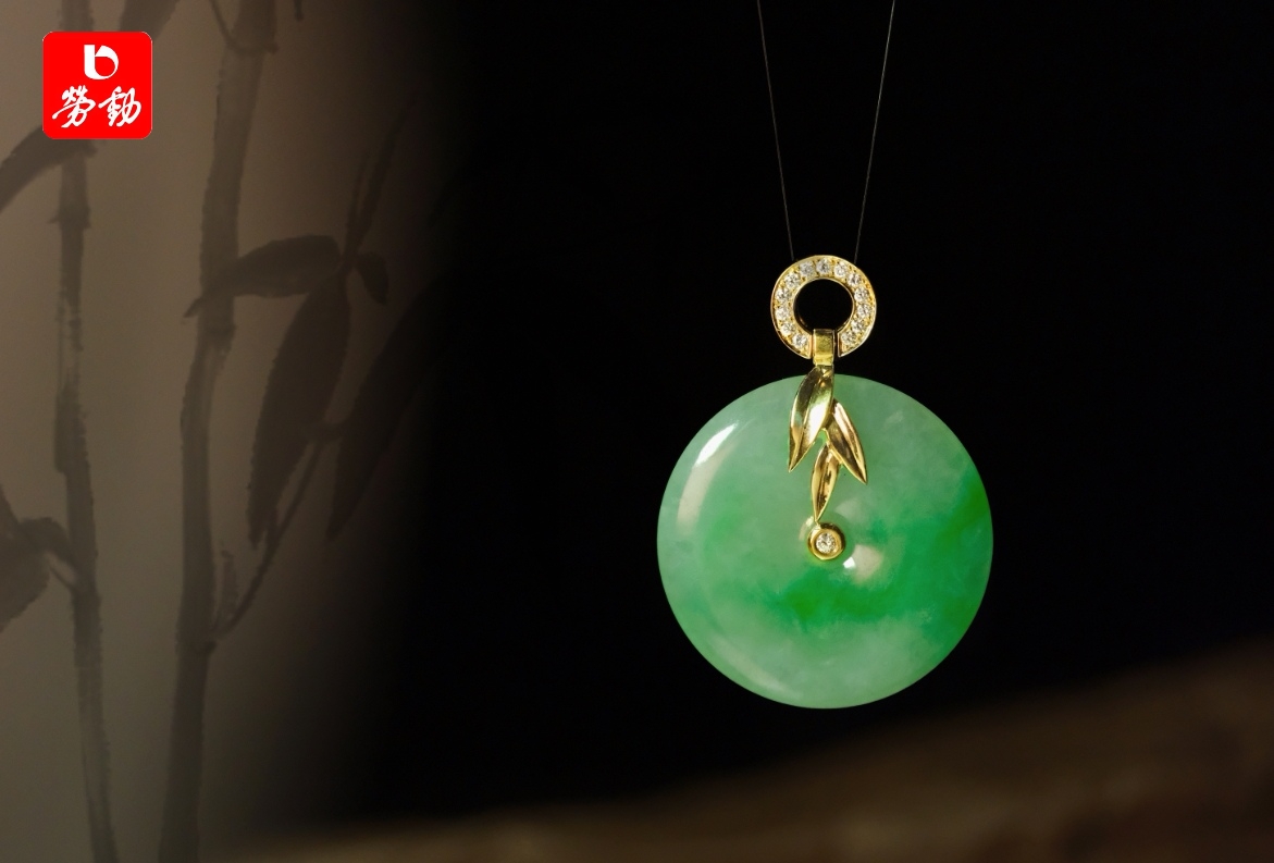 老凤祥今季推出“竹”系列翡翠首饰颇具国风之美,其中一款翡翠金竹叶扣头的平安扣,采用色泽莹润的绿翡作为平安扣,18K金作为竹叶的扣头链接钻石和K金打造的圆扣,十分别致出新。平安扣的造型是外面一个大圆套着里面一个小圆,大圆套小圆的设计,很像夫妻和和睦睦、圆圆满满的氛围,所以佩戴平安扣也有着夫妻关系融洽、家庭幸福美满的寓意。此外,翡翠金竹叶平安扣的寓意更丰富,有:扣住平安、竹报平安、青春常驻、财源滚滚、家庭幸福等。