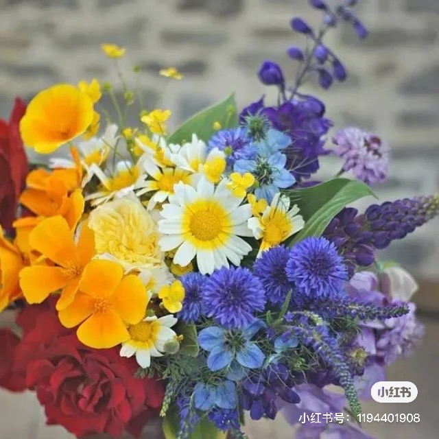 同色系:同一色系的花朵具有不同层次的明暗变化,由浅到深,看上去色彩丰富,花朵的“主次”更加鲜明。