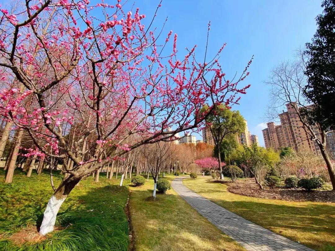 莘庄梅园是上海市外环环城绿带的一个重要生态节点,以梅花为特色,也是一个非常适合带娃露营的“宝藏公园”。只要带上简易的露营或者野餐装备,就能美滋滋地享受温暖的阳光啦,大草坪也足够让孩子们奔跑嬉戏、踢球、玩飞盘。园内还植有梅花30多个品种约1000余株,分别有江梅品种群、跳枝品种群、美人梅品种群、垂枝品种群、玉蝶品种群、龙游梅、宫粉品种群、绿萼品种群等,另外的185盆游龙梅等盆栽品种则多从莘庄公园“远嫁而来”,绝对能让梅花爱好者一饱眼福。