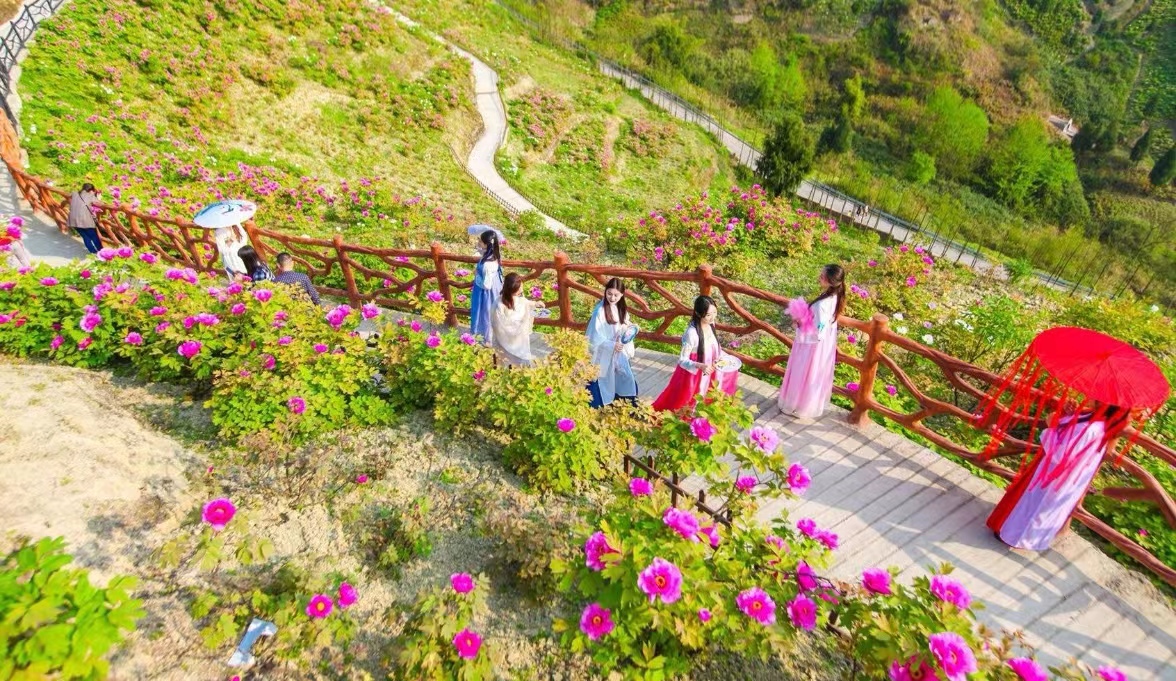 甘肃:乘坐专列穿越桃花海 短途游助力乡村振兴