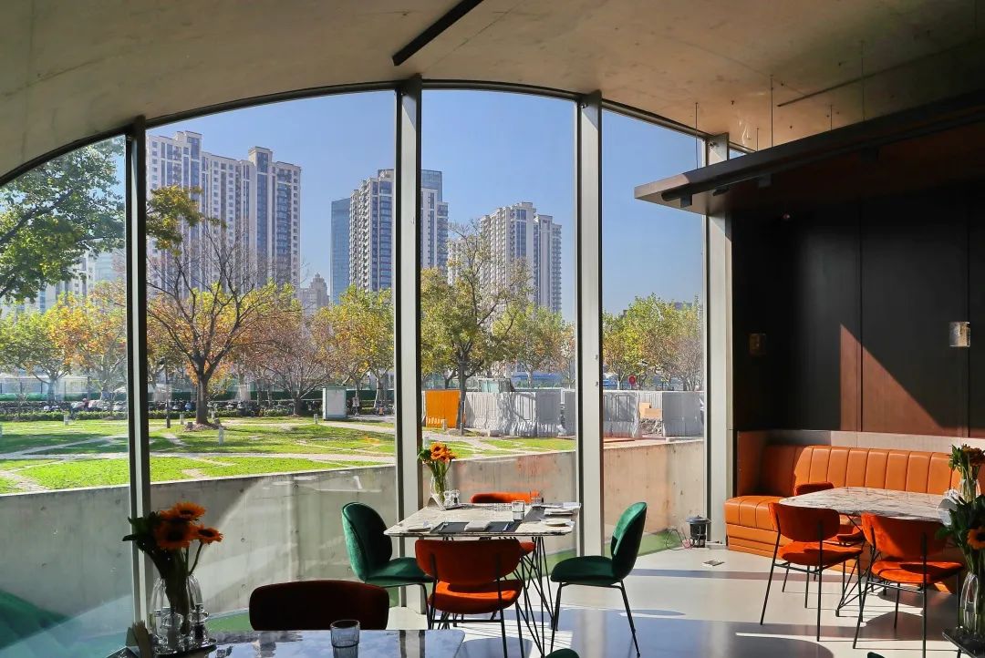 通透的幕墙玻璃,让你在建筑任何一个角落,都能被周围景物环绕。这里,不仅是一个咖啡馆,也是一个驿站、一个观景平台。