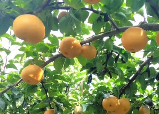 因果形漂亮如满月而得名。梨果扁圆形,果形端正,果皮黄褐色或浅黄褐色,表面有不规则的斑点。果皮有光泽,果肉乳白色,肉质细、味道清甜适中,口感清香爽口。秋月的果形大,平均单果重450克左右,最大可达1000克左右。