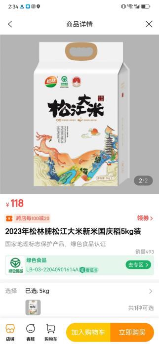 “建行生活-鱼米之乡”平台上的“松林牌”松江大米正在热销中