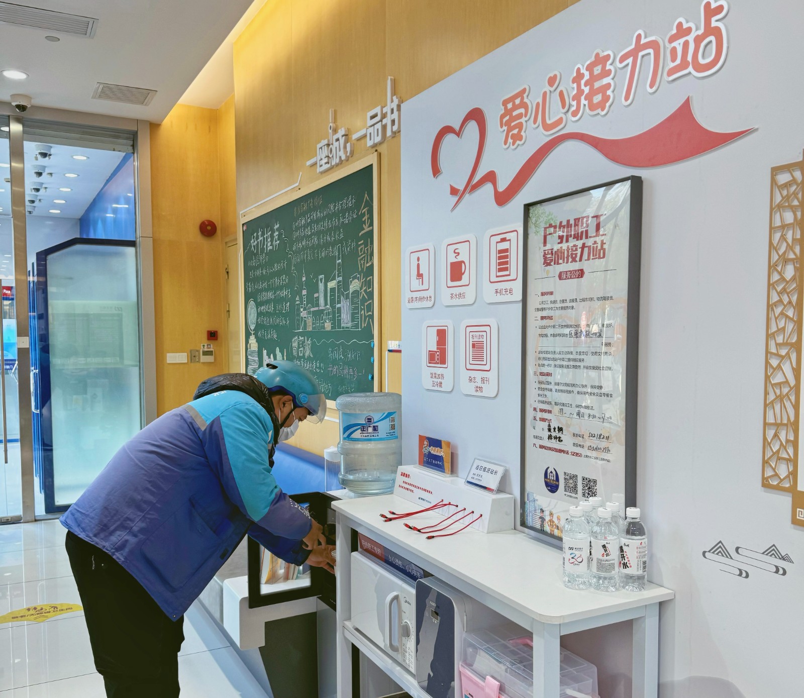 日前,全国总工会发布2023年“最美工会户外劳动者服务站点”名单,浦发银行上海闵行支行的服务站点作为上海地区唯一一家商业银行网点上榜。长期以来,该行始终坚持金融的政治性和人民性,通过设立“户外劳动者服务站点”用心、用情、用爱做好站点的服务工作。既然为解决区域内户外劳动者的饮水供给、避暑取暖、餐食加热等实际困难默默奉献,也为深入推进人民城市建设保驾护航。