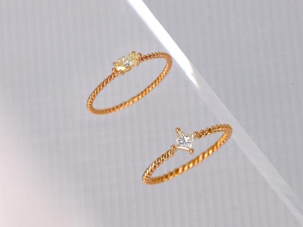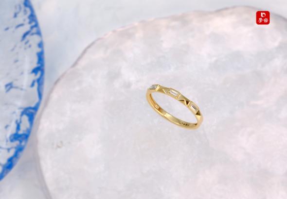这次推出的异形钻石戒指,打破传统圆形钻石的常规。有大方钻与小钻组合的蕾丝花边形戒指,大钻耀眼夺目,小钻灵动精致,镭丝花边宛如梦幻的蕾丝,为戒指增添了几分浪漫与优雅。长方钻与立体三角形黄金错落交织的戒指,刚与柔、直与曲的巧妙结合,充满了现代时尚感,突显出佩戴者的独特品味与果敢个性。还有方钻与圆钻、方钻与水滴钻相镶嵌的戒指,不同形状的钻石相互辉映,寓意着生活中的多元与包容 ,无论是职场还是社交场合,都能让您成为焦点。