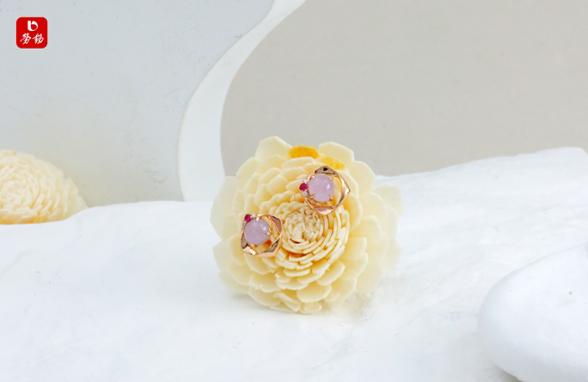与之配套的耳坠,戒指同样令人心动。K金材质打造,坚固而不失时尚感。镶嵌在翡翠周围的红色宝石,如同一颗颗跳跃的火焰,与静谧的紫色翡翠形成鲜明对比,碰撞出别样的火花。佩戴耳坠,为夏天清丽的妆容增添一抹优雅;戴上戒指,举手投足间散发着独特的魅力,为平凡的日常增添一份雅致。