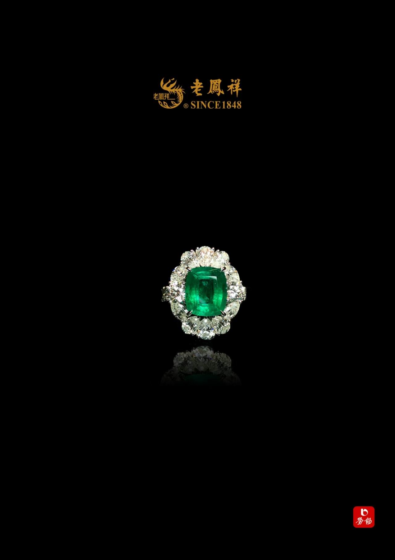 当建筑的对称哲思邂逅宝石的璀璨锋芒,老凤祥以百年匠心为笔,将宫廷建筑的恢弘气度与祖母绿的深邃秘境熔铸为一枚方形钻戒。那抹沉淀久远的深沉绿韵,恰似古堡穹顶下的幽绿琉璃,在光影流转间诉说着跨越时空的贵雅传奇。