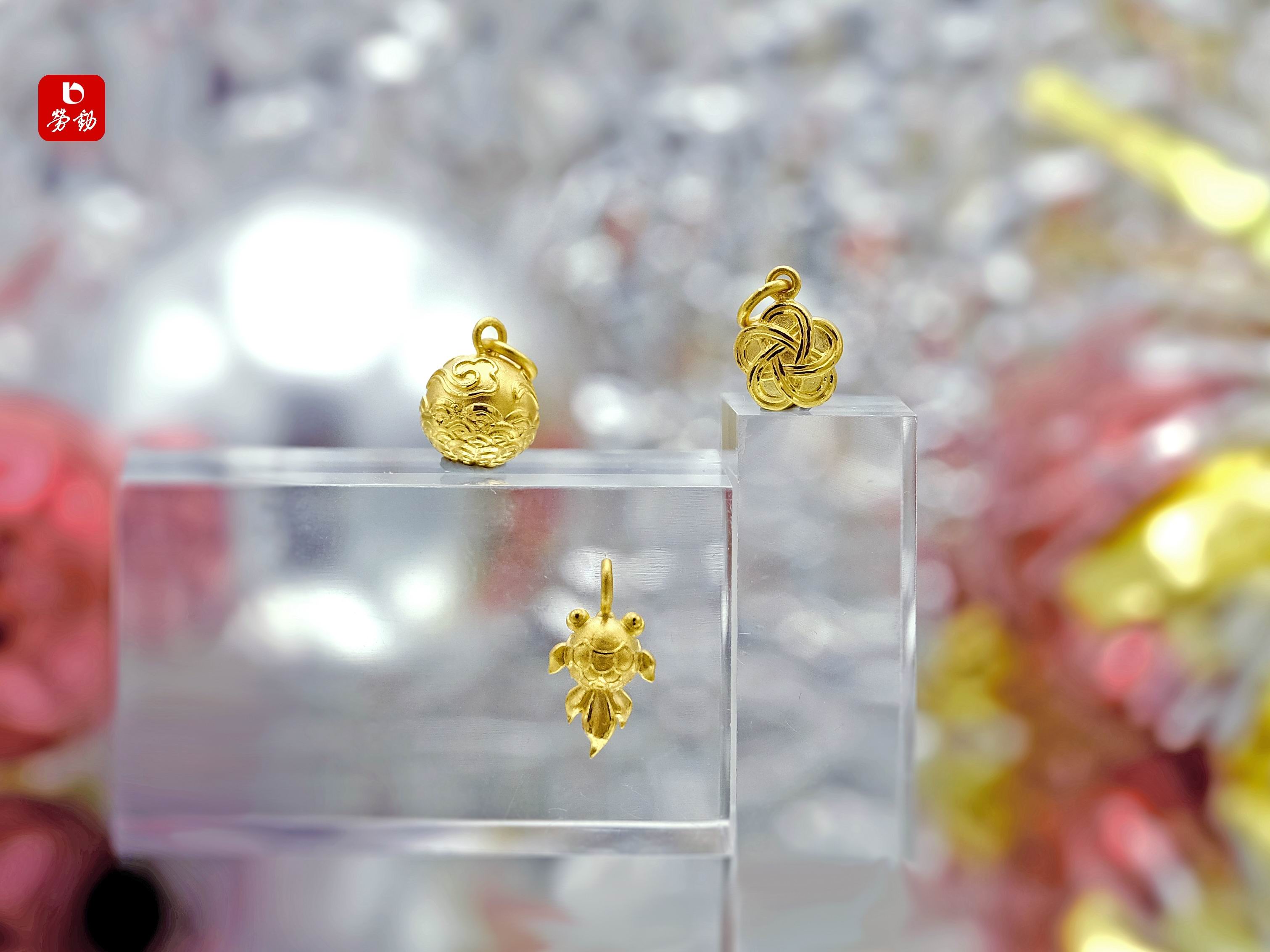 黄金的价值从不只在行情波动里,更在代代相传的情感中。新生儿的第一份见面礼,藏着长辈最纯粹的祝福——福顺旺福袋小巧饱满,细腻镌刻的“福、顺、旺”三字,寓意宝宝一生有福、事事顺遂、家族兴旺;圆润可爱的金鱼挂件,象征金玉满堂,愿孩子未来富足无忧 。这些小克重黄金饰品,既不会给预算带来压力,又能以永恒的光泽见证新生命的成长,成为多年后翻阅相册时的温暖念想。