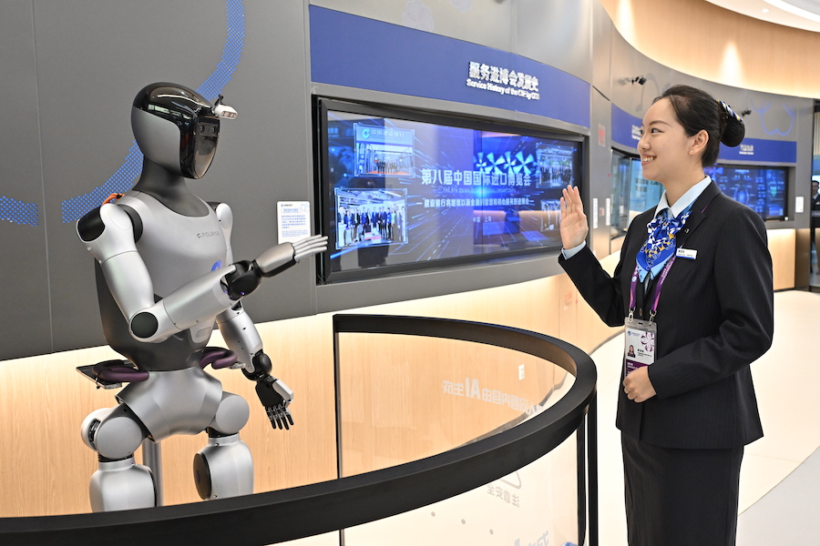 近年来,建行上海虹桥会展支行不断优化创新,结合每年进博会主题对场景更新迭代。今年,根据进博会“新时代、共享未来”的主题,他们积极探索“AI+具身智能人形机器人”在金融服务领域应用的新模式,进博会期间全新推出智能人形机器人GR2。作为一位高效的“数字员工”,GR2可通过自然语言对话和肢体动作,为客户提供智能问答、迎宾接待服务,代表着科技与金融的双向奔赴、互相成就。智能人形机器人的应用不仅有望实现服务效率的大幅提高,更通过大数据和人工智能的技术融合,为每位客户提供更个性化、更精准的服务,真正做到“想客户所想”,更好满足客户多元化、差异化发展需要。