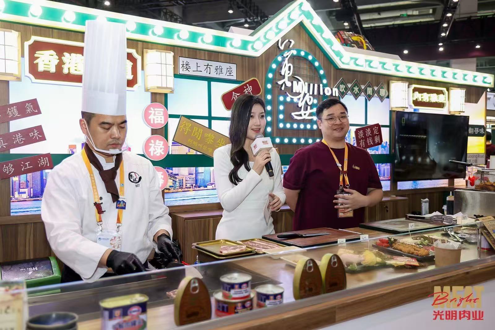 作为光明肉业全产业链企业之一的香港万安,本次进博会推出的Nature Délice 谷饲牛肉、COREN 高云栗饲猪,经厨师妙手成港式佳肴,搭配港味泡面与上海梅林午餐肉,每一口都是香港记忆,每道菜都是对港味文化的致敬。