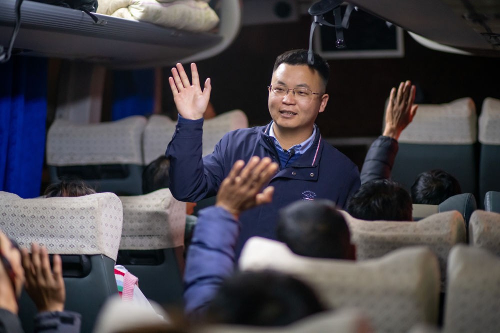 2月12日晚8时许,云南省曲靖市麒麟区人力资源服务产业园内,满载30名务工人员的大巴车整装待发。一位“90后”青年快步登上大巴车,叮咛许久,提醒大家在新城市工作、生活时要注意的细节。这位青年就是全国人大代表袁海波。