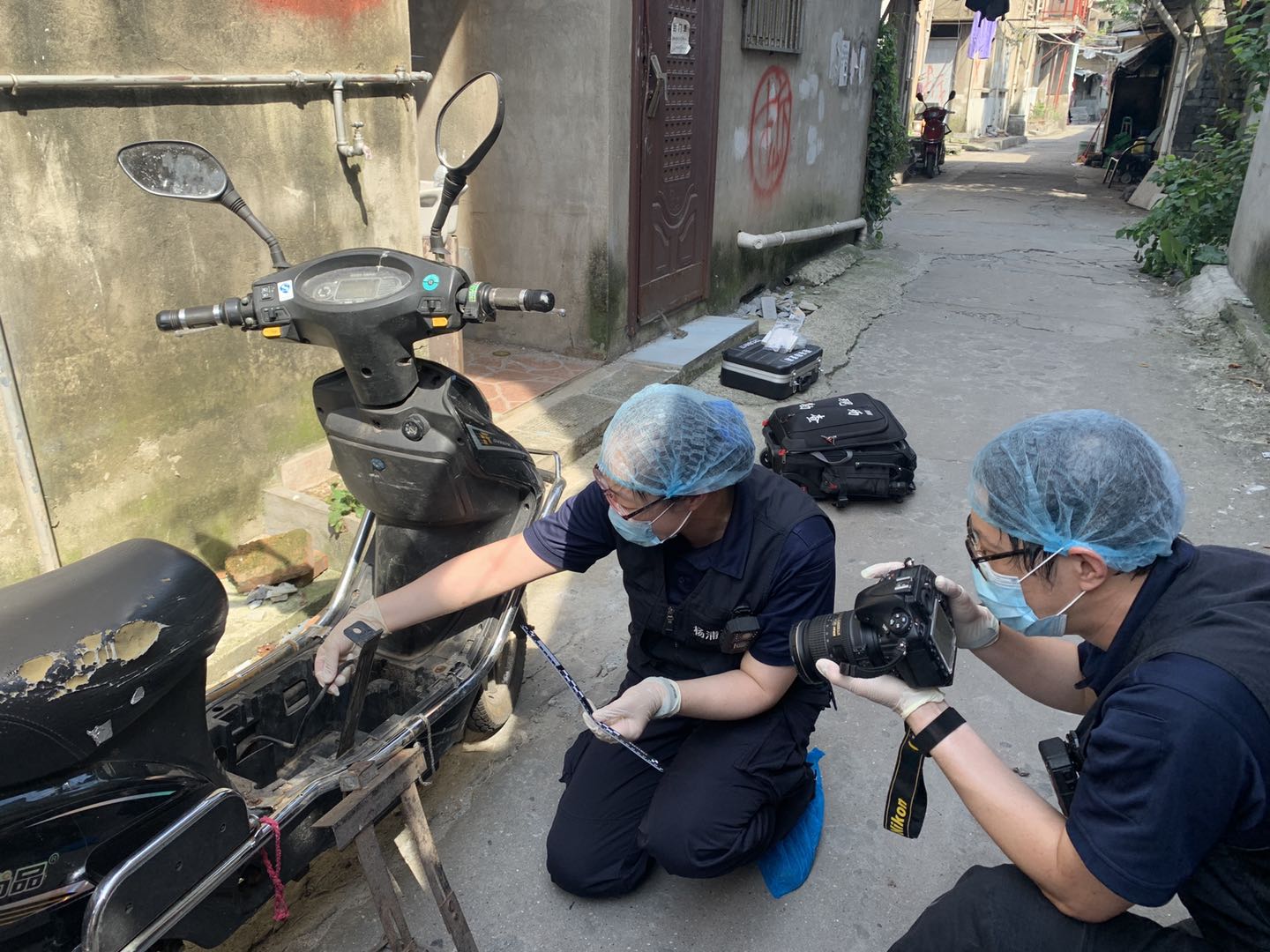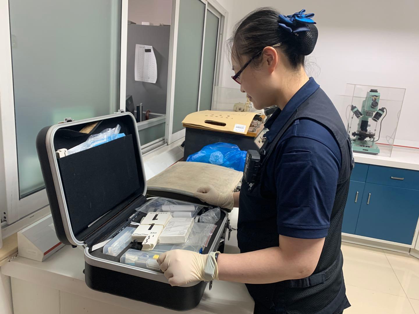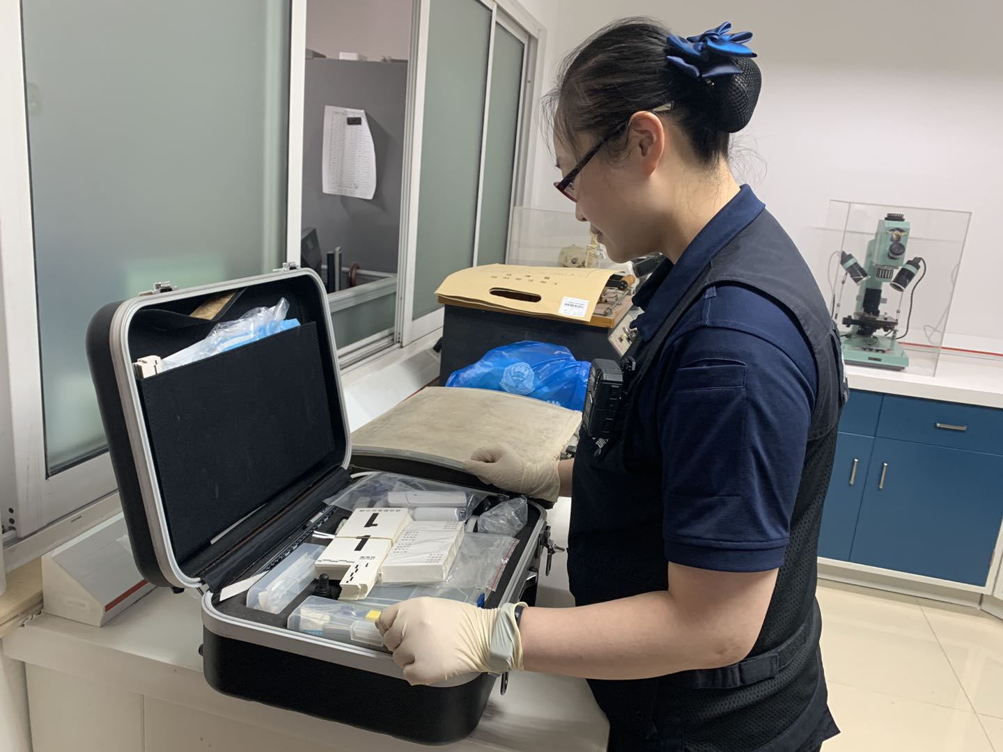 取证环节不到一刻钟,吴瑕的脸已被太阳晒得通红。“这个现场比较简单,我们只穿了最基础的三件套,如果情况更复杂些,就要穿全套防护服了。”话虽如此,吴瑕手上的橡胶手套内已被汗水打湿,紧紧地贴在手上。