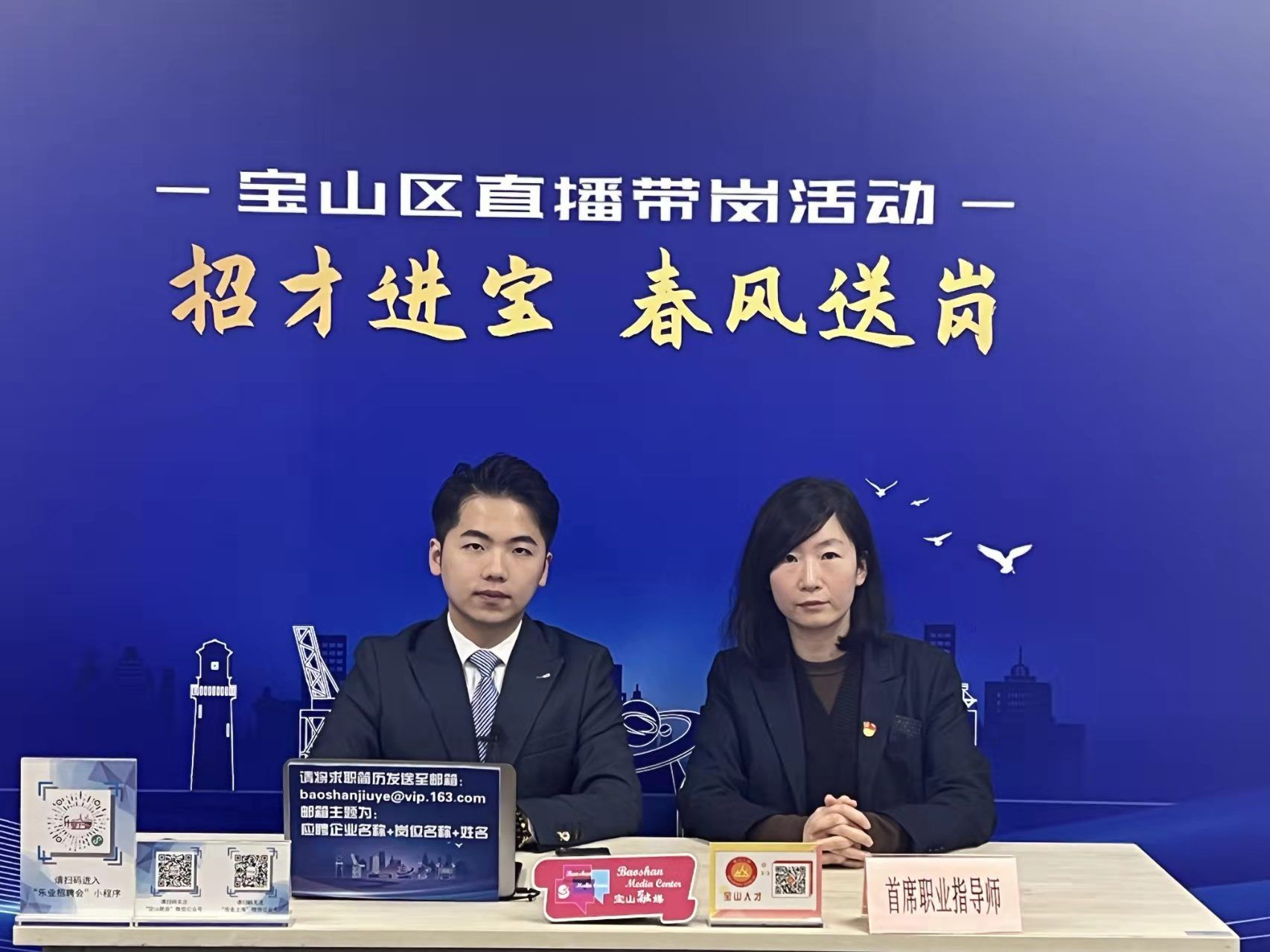 活动由宝山区人力资源和社会保障局主办,区就业促进中心、区人才服务中心联合承办,区融媒体中心提供支持,通过上海宝山抖音号、宝山汇APP等平台同步进行直播,共吸引5500余人次点击观看,进一步扩大了“宝山区科创中心主阵地建设海内外揽才工程”的影响力。