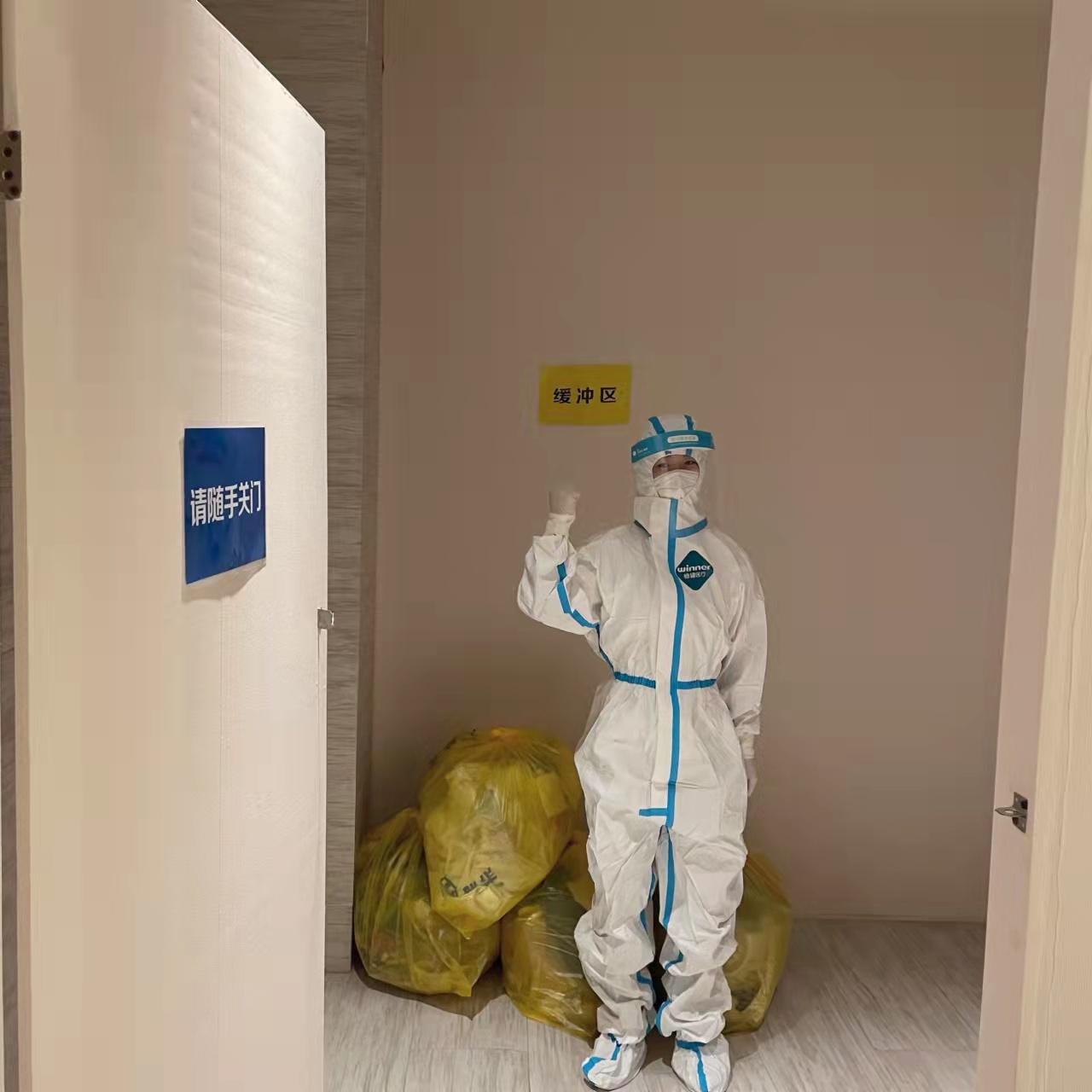 昨天,我们刚刚送走了一批隔离人员,然后就开始干起打扫房间、环境消杀等固定动作,以迎接下一批隔离人员的入住。我想说的是,也许成为酒店人时,“穿防护服”绝不在我们的计划之中,但既然如今身在“疫”线,我们一定会做好所有的保障工作,我们一定会做到。