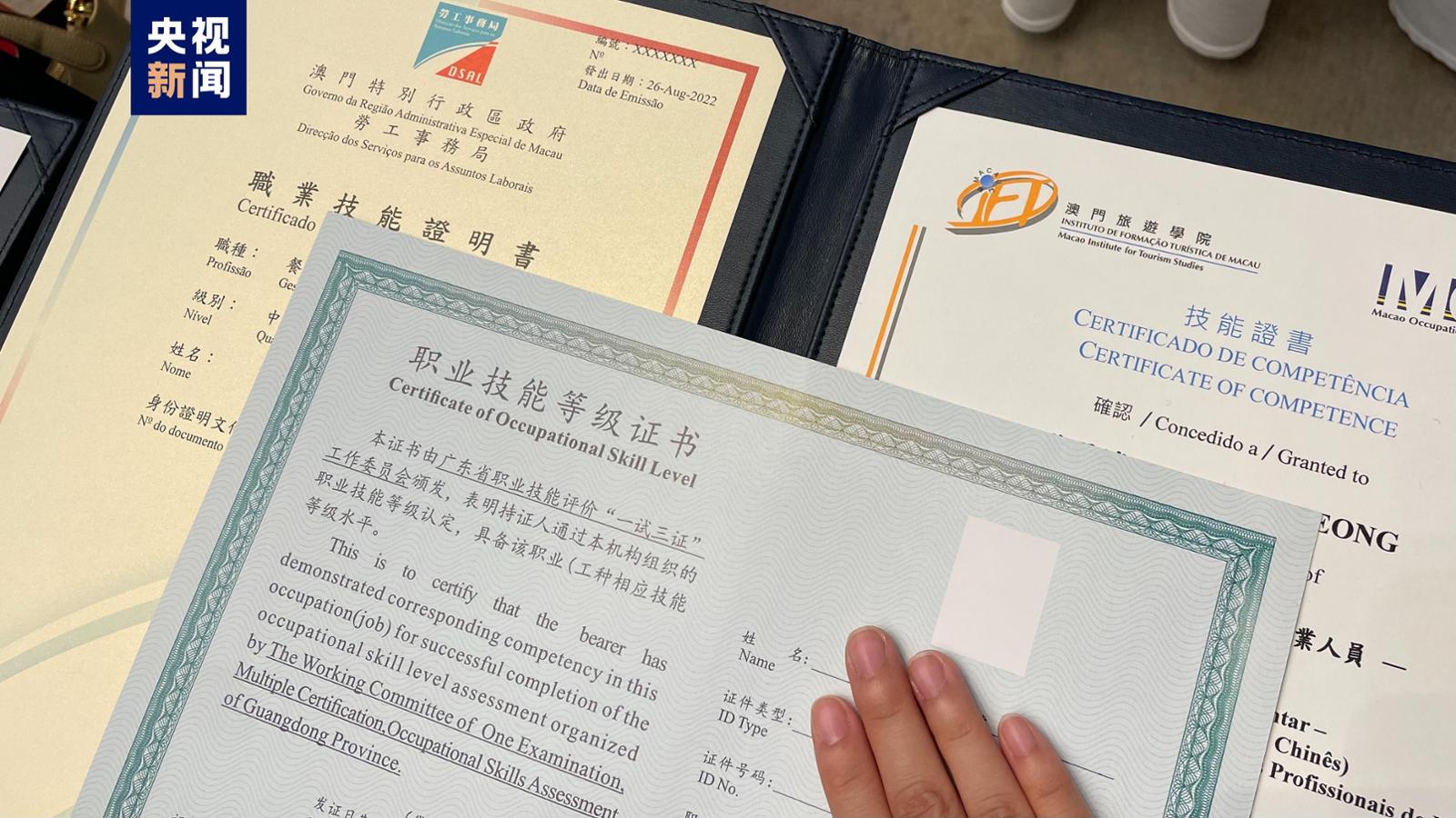 今天(8月30日),记者从广东省人力资源和社会保障厅和澳门特别行政区政府劳工事务局获悉,粤澳职业技能“一试多证”专项合作落地横琴粤澳深度合作区,首批通过“一试多证”试点考试的粤澳考生也于今日(8月30日)获颁内地职业技能等级证书、澳门职业技能证明书和澳门职业技能认可基准技能证书这三份职业技能证书。这标志着粤澳技能人才评价交流合作不断深化,粤澳两地人才流动更加畅通。