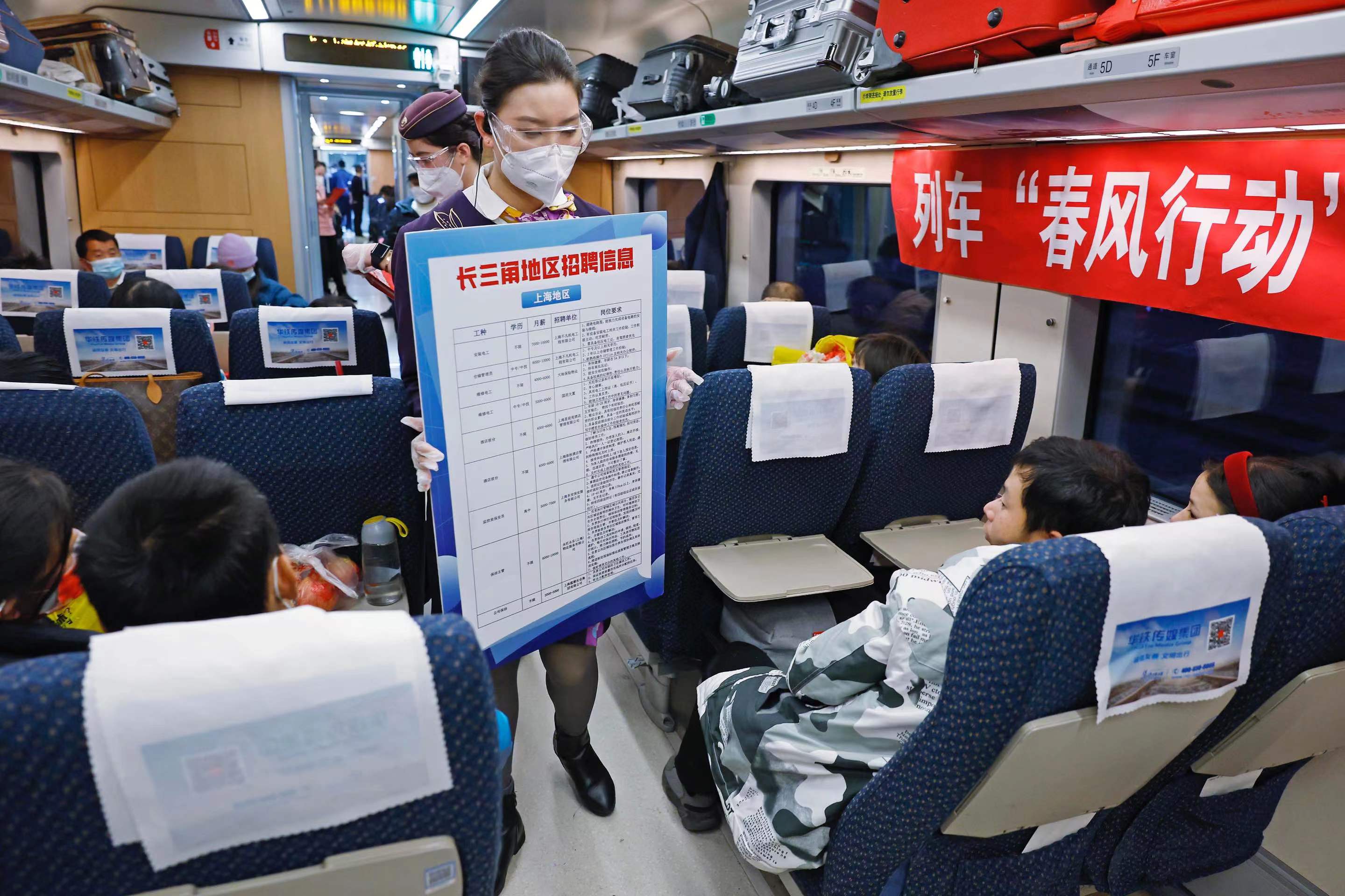 也是在那段日子里,铁路开启了送岗位进车厢的“春风行动”,甚至还有直接将招聘会搬到火车站广场上的。目的就是能让那些从阜阳等务工输出大省出来的打工人早一点找到工作岗位,实现从“出站口”到“厂门口”的无缝衔接。