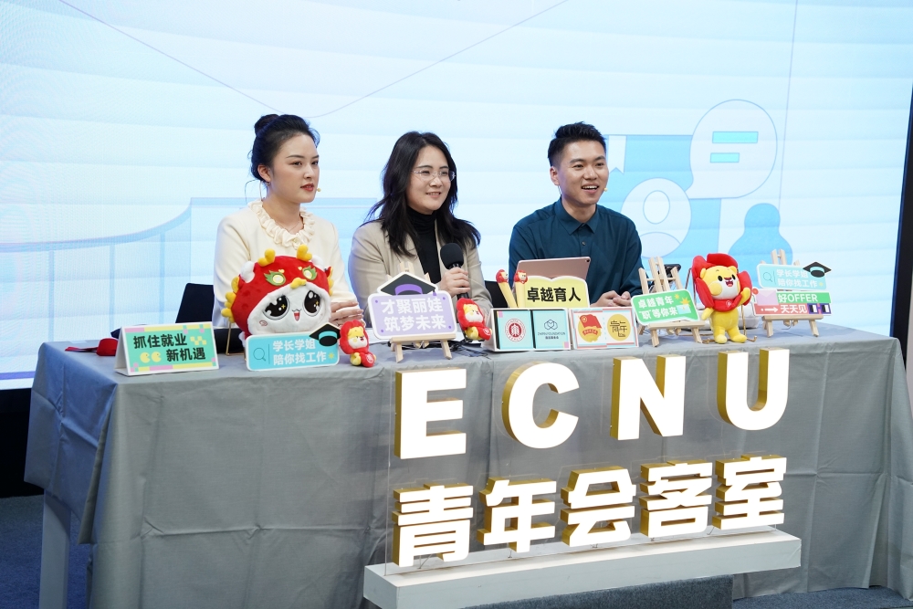 直播活动邀请了多位嘉宾参与,比如,荣获首届全国大学生职业规划大赛上海赛区教学赛道总决赛高教组金奖的罗艺老师,剖析了毕业生求职的外因探索及内在提升;心理健康教育与咨询中心专职咨询师叶子宁老师,从专业角度引导毕业生们正视求职心理压力,向毕业生们传授调节压力的“三大法宝”。在央企工作的张陈俊校友、华为上海研究所人力资源经理汤晓芸校友,也回到母校用各自丰富的职场经验回答毕业生们热切关注的问题,助力师大学子择业就业。