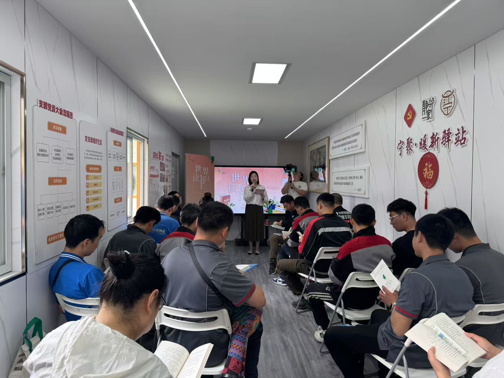 4月23日,正值第30个世界读书日,一场快闪读书会在江宁路街道新就业群体党群服务站举行,参加者均为辖区内外卖、快递站点的“骑士”。平日奔波在大街小巷的他们,在这个午间与书籍邂逅。