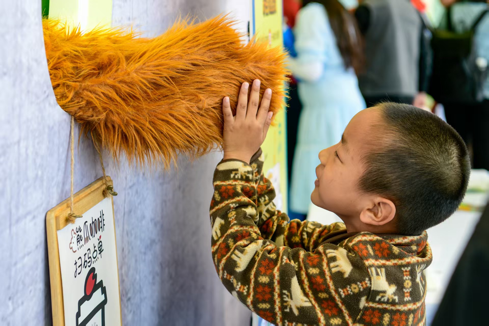 头图为残障咖啡师伸出“熊爪”与小朋友互动。劳动报记者颜筱依 摄影