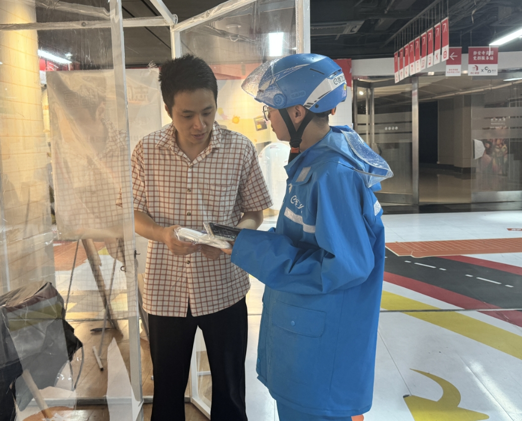 “我们担心骑手们淋雨会生病,也准备了热水给他们,请他们多喝热水。”静安寺商圈党群服务站驻站联络员陈振良表示。