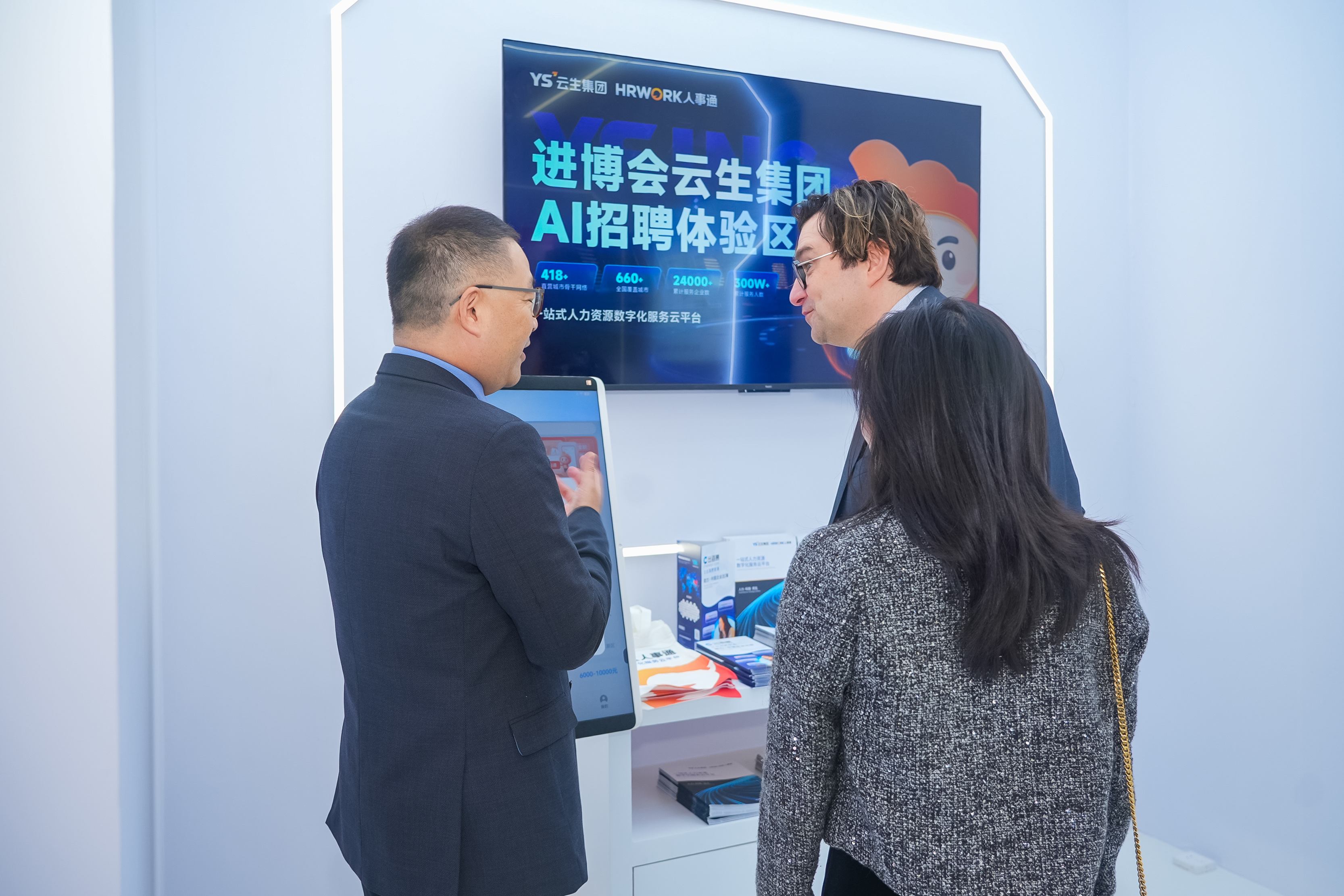 头图为云生集团进博会展AI招聘体验区。
