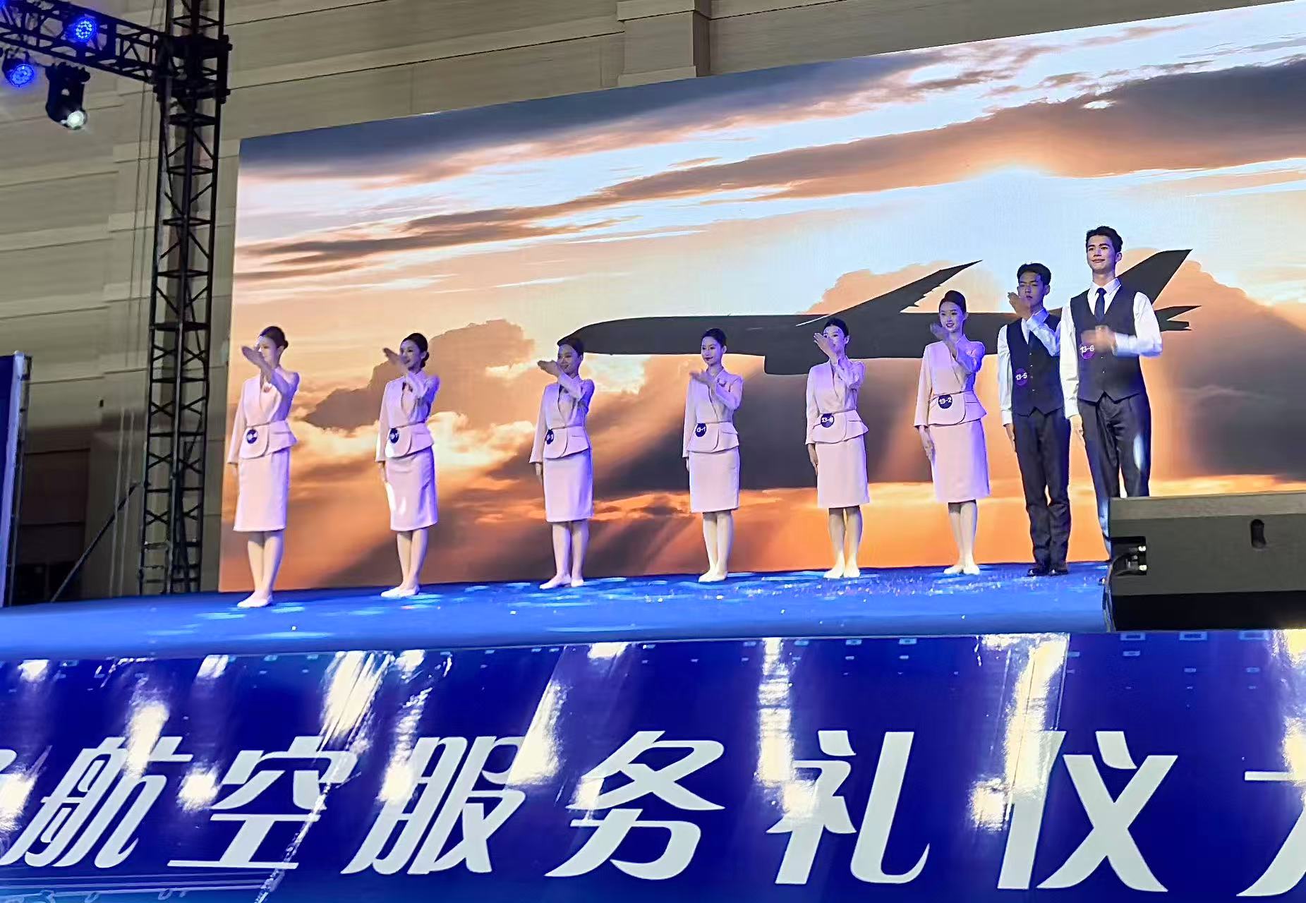 大赛设置 “行礼立仪”“展礼示仪”“说礼赞仪”三个核心环节,层层递进考验选手的专业素养与综合能力。首个环节 “行礼立仪” 中,各参赛队身着统一制服,精神抖擞地完成站姿、坐姿、指引手势、问候礼仪等一系列基础动作。“展礼示仪” 环节堪称赛事亮点,各队伍围绕航班服务中的典型场景自行编排情景剧,涵盖应急处置、特殊旅客服务、客舱沟通技巧等实战内容。“说礼赞仪” 环节则为选手们提供了展示个性风采的舞台。各队伍打破传统礼仪展示的框架,以歌曲联唱、活力舞蹈、乐器演奏、诗朗诵等多元形式,将航空礼仪文化与青春创意相结合。
