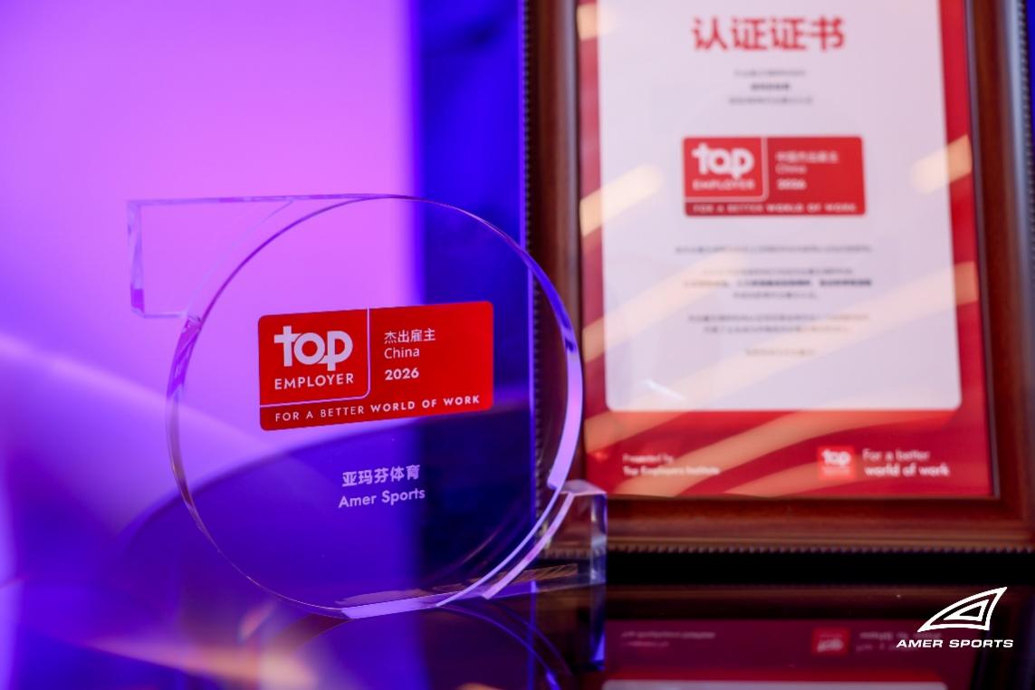 近日,全球人力资源权威专业机构——杰出雇主调研机构(Top Employers Institute)正式发布“2026中国杰出雇主”榜单。亚玛芬体育凭借战略性人才梯队发展、组织向心力塑造与员工体验深耕等方面的体系化推进与持续投入,再度荣获“中国杰出雇主”认证。